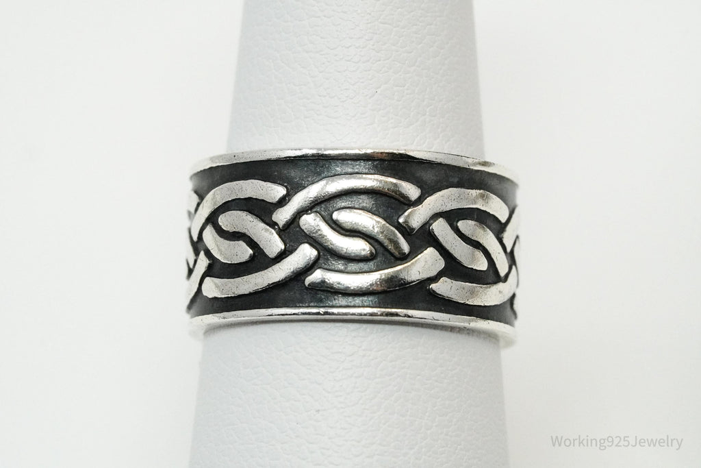 Vintage Celtic Knot Design Sterling Silver Band Ring - Size 7.5
