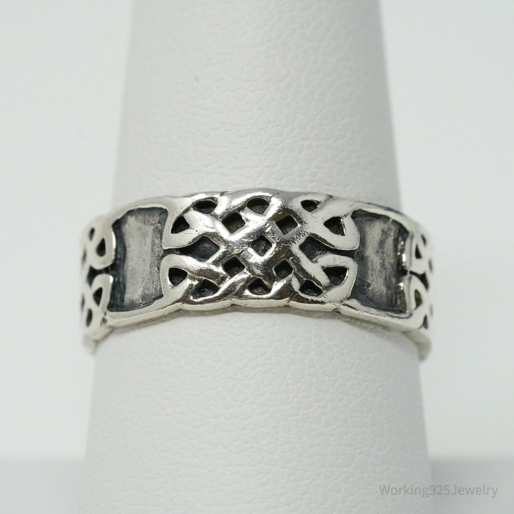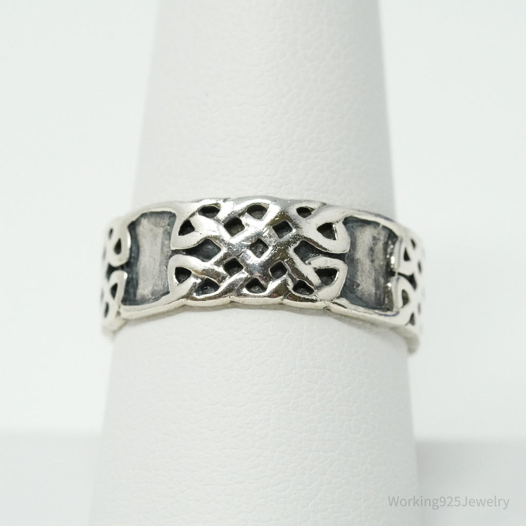 Vintage Celtic Knot Design Sterling Silver Band Ring - Size 9