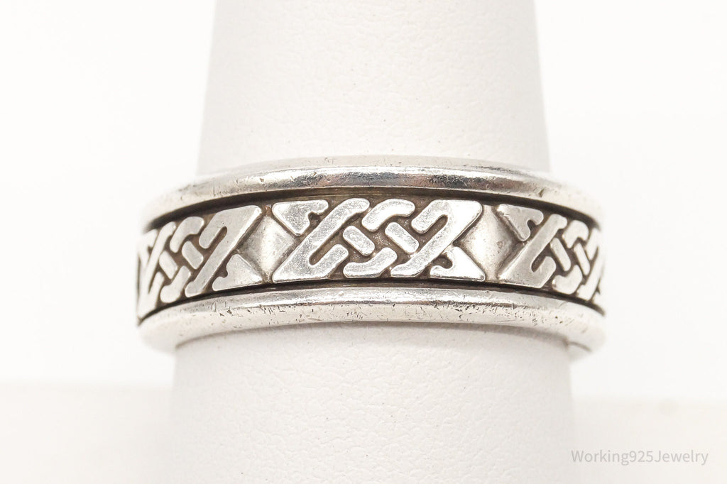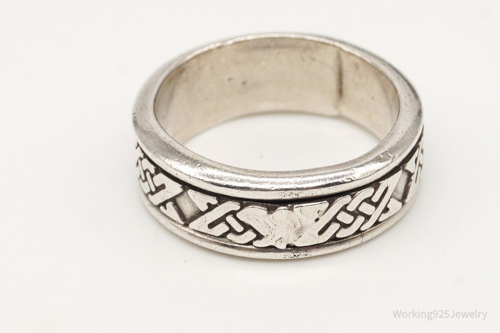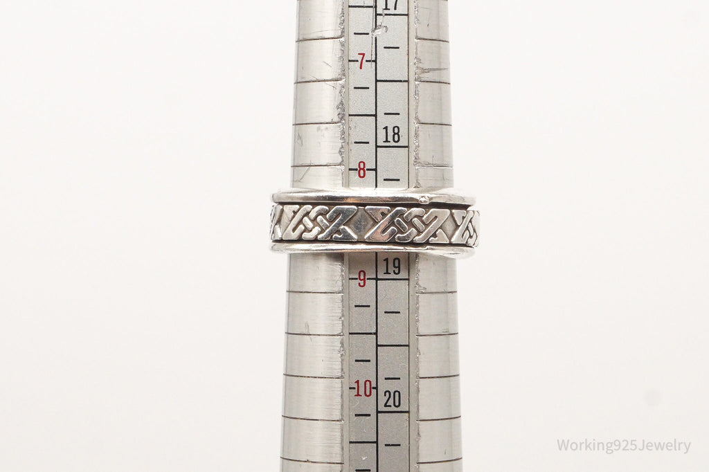 Vintage Celtic Knot Design Sterling Silver Spinner Band Ring Size 8.75