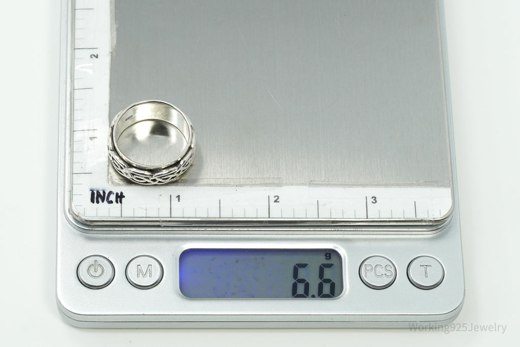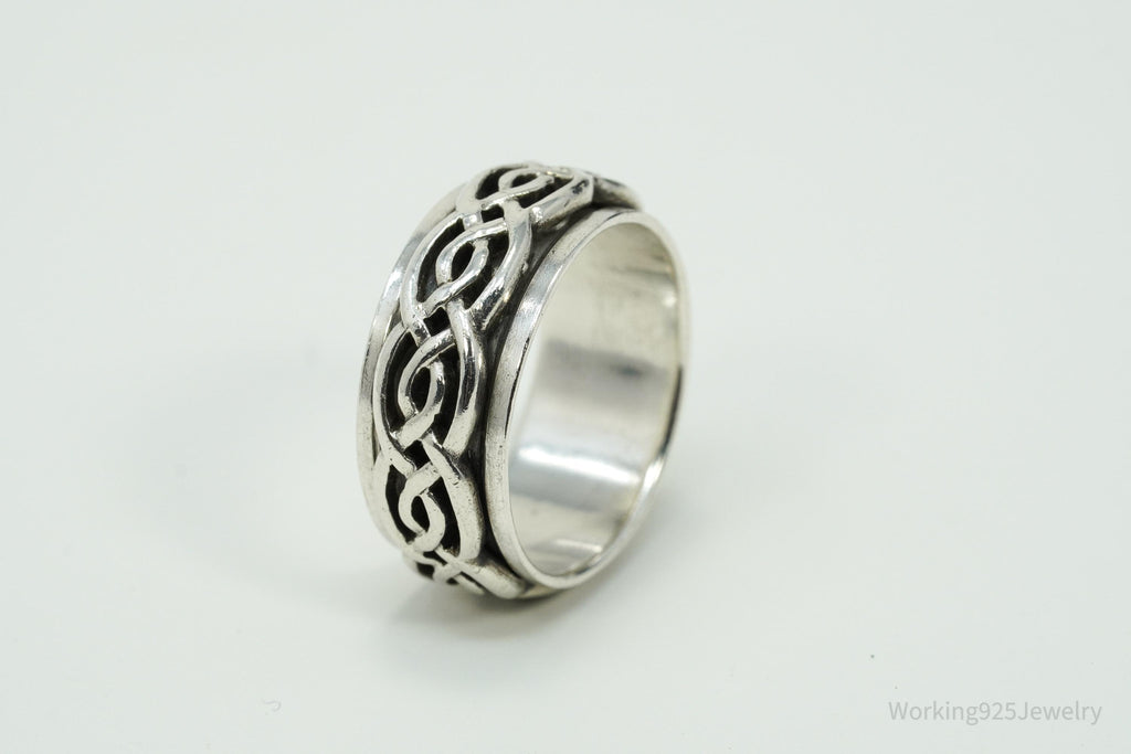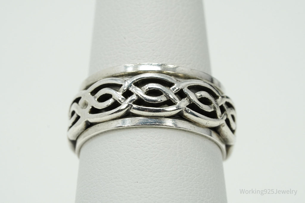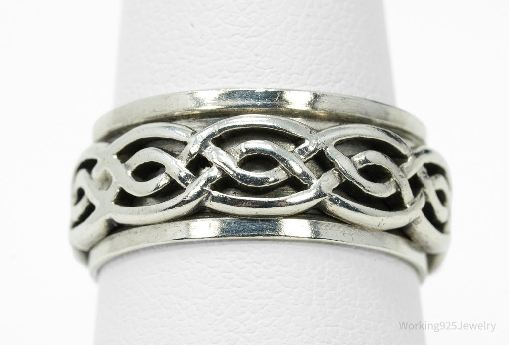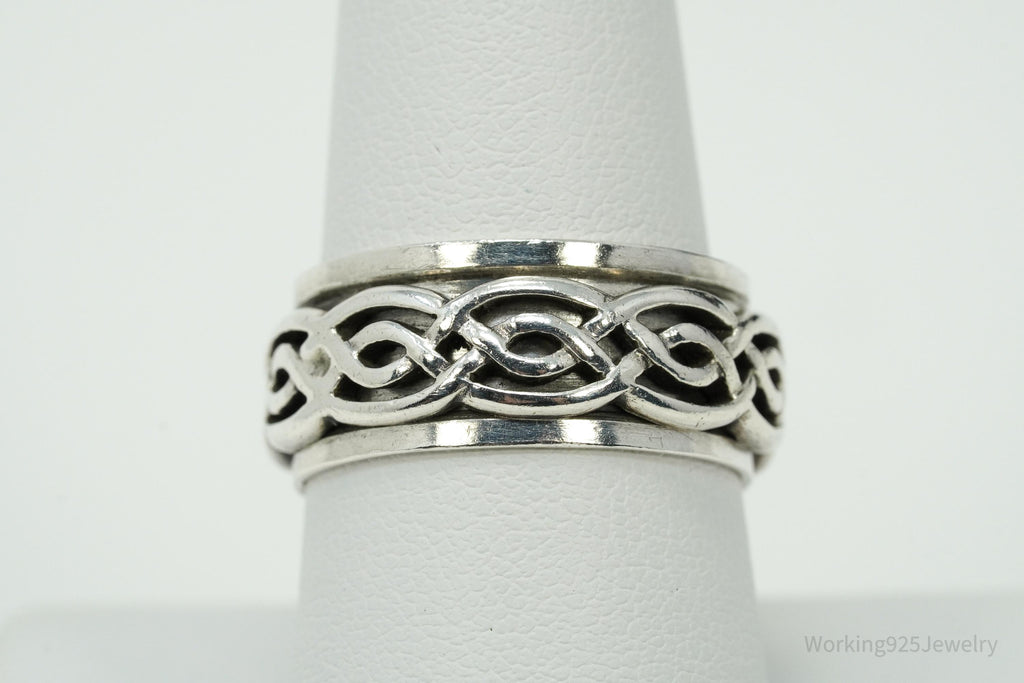 Vintage Celtic Style Design Sterling Silver Spinner Band Ring Size 8.75