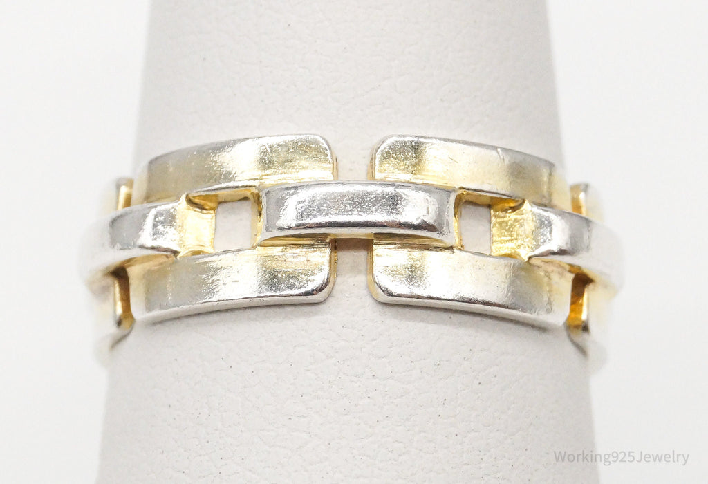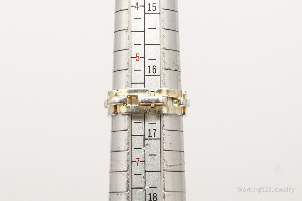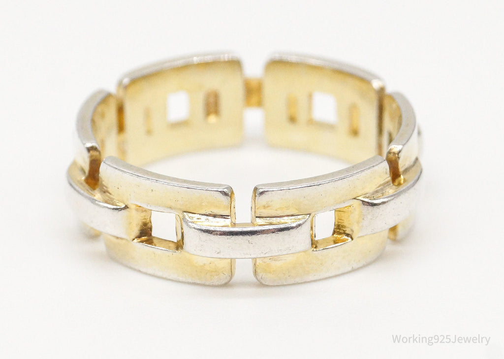 Vintage Chain Link Gold Wash Sterling Silver Ring - Size 6