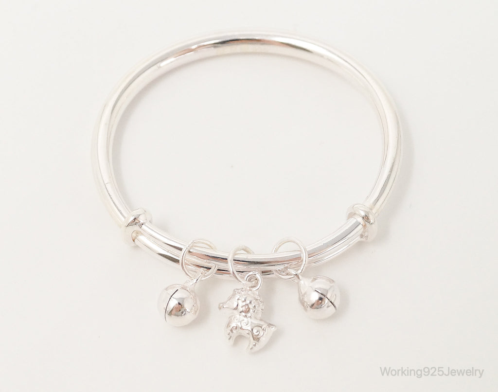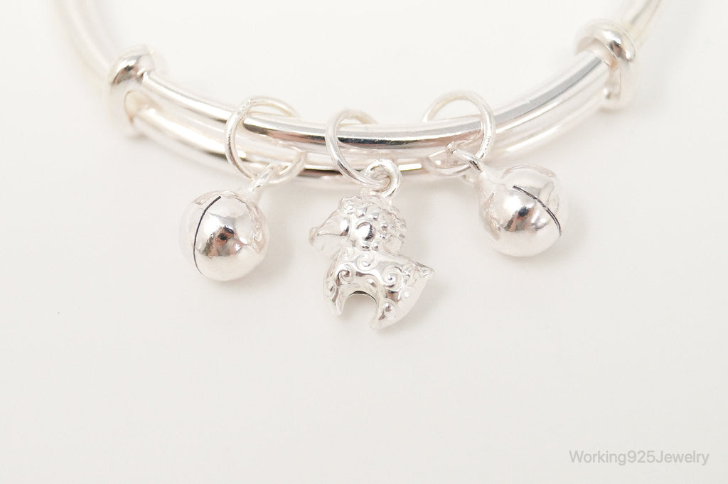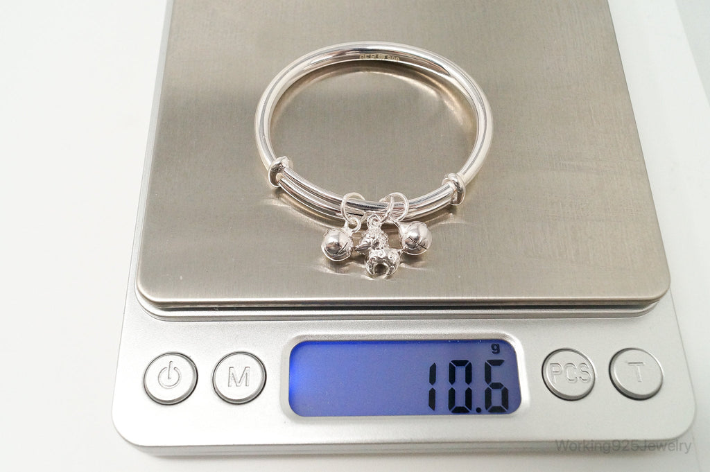 Vintage Charm Jingle Bell 999 Fine Silver Bangle Baby Kids Bracelet