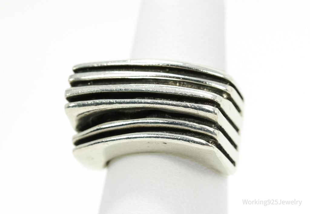 Vintage Chunky Modernist Style Sterling Silver Ring - Size 5.75