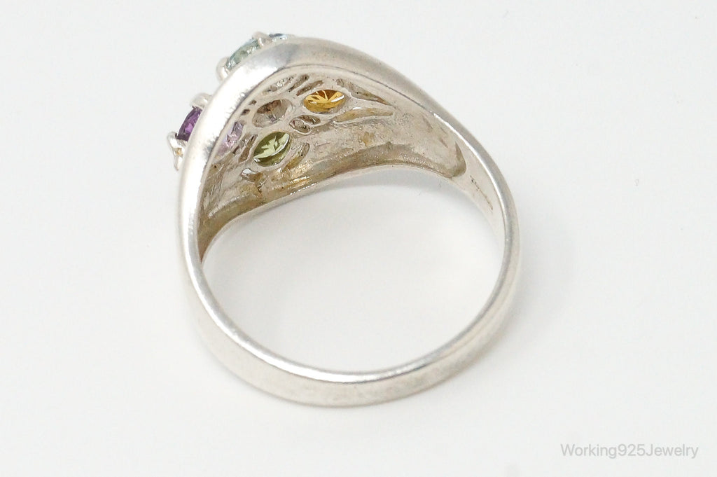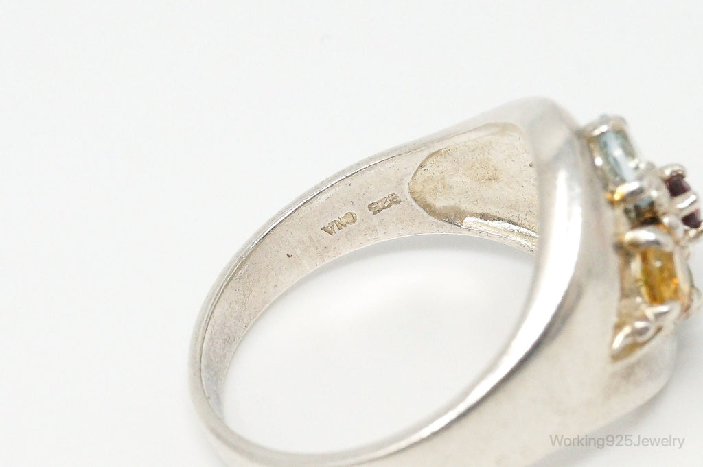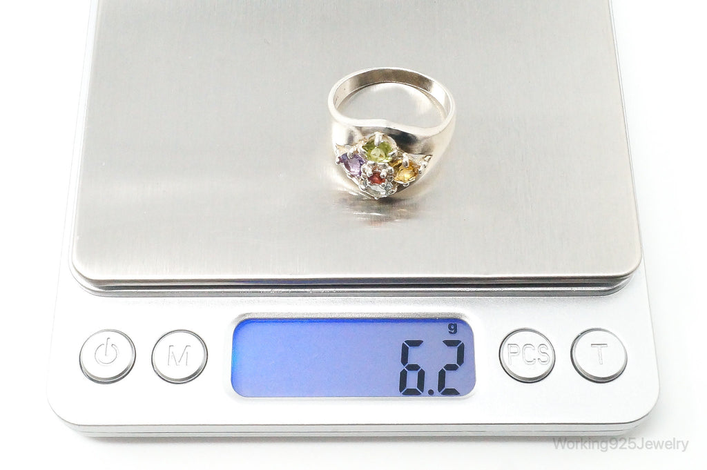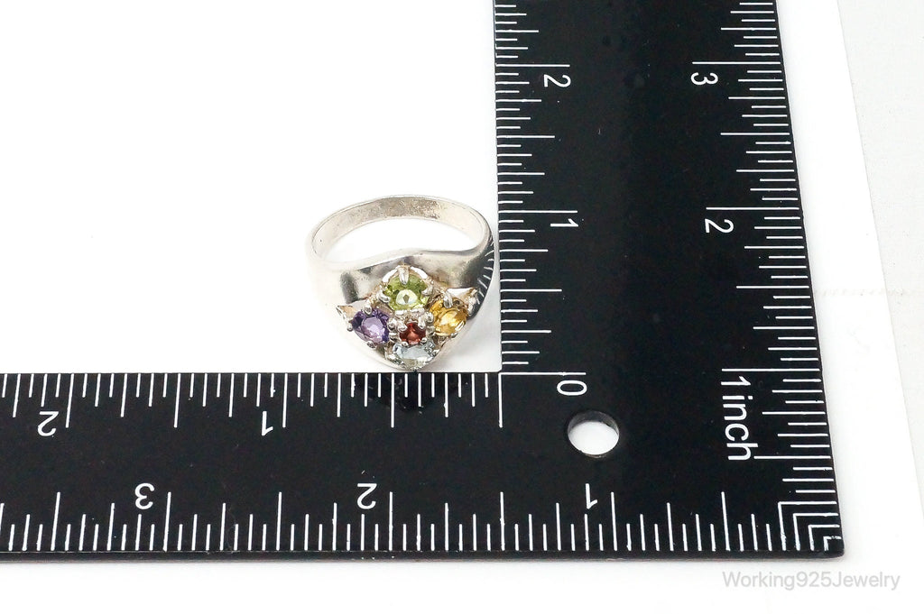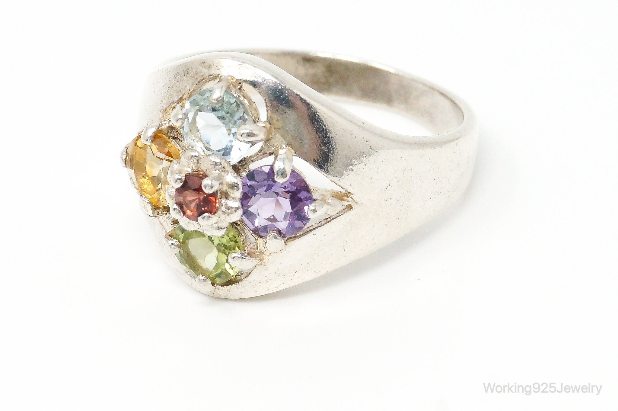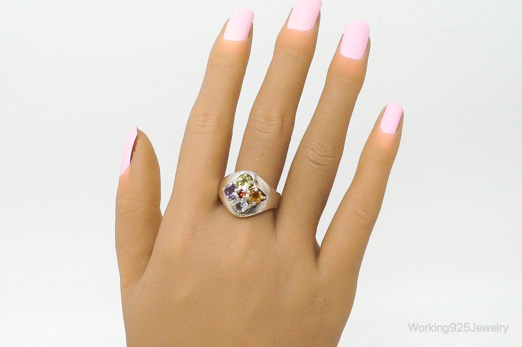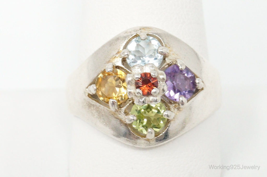 Vintage Citrine Garnet Peridot Amethyst Topaz Sterling Silver Ring Size 11