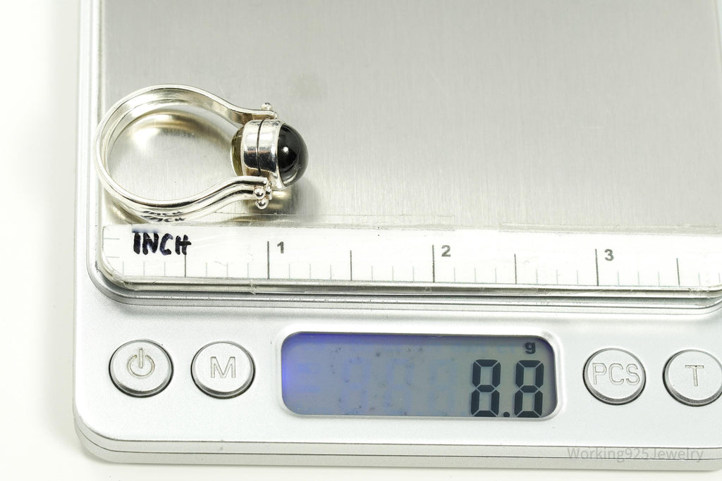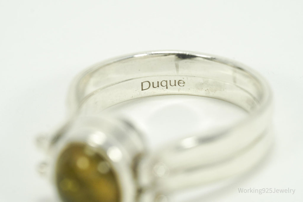 Vintage Citrine & Sheen Obsidian Reversible Silver Ring - Size 11