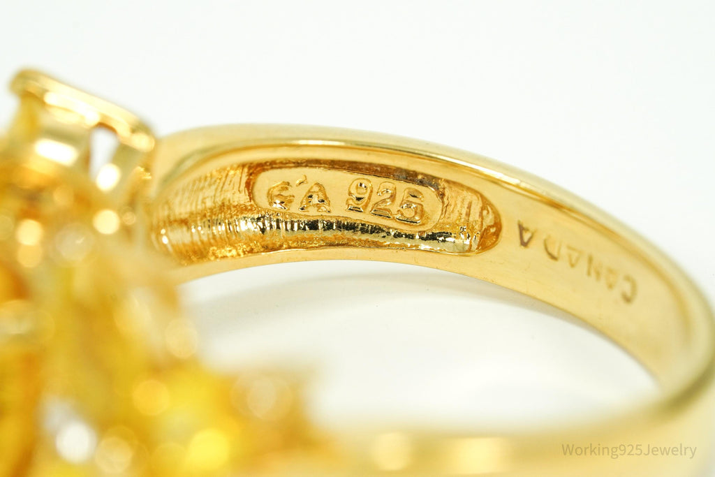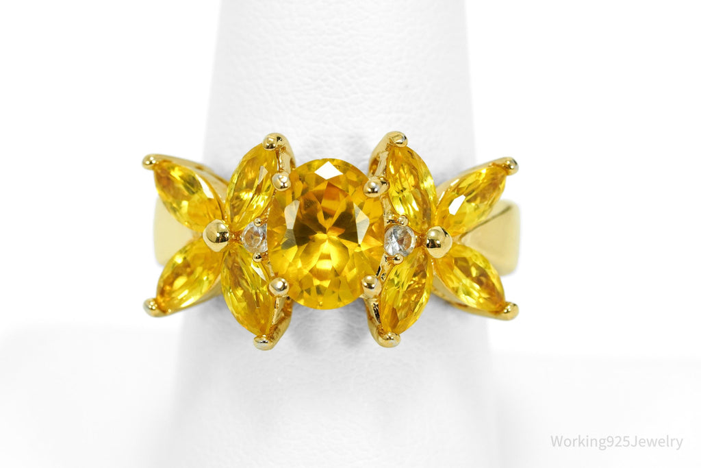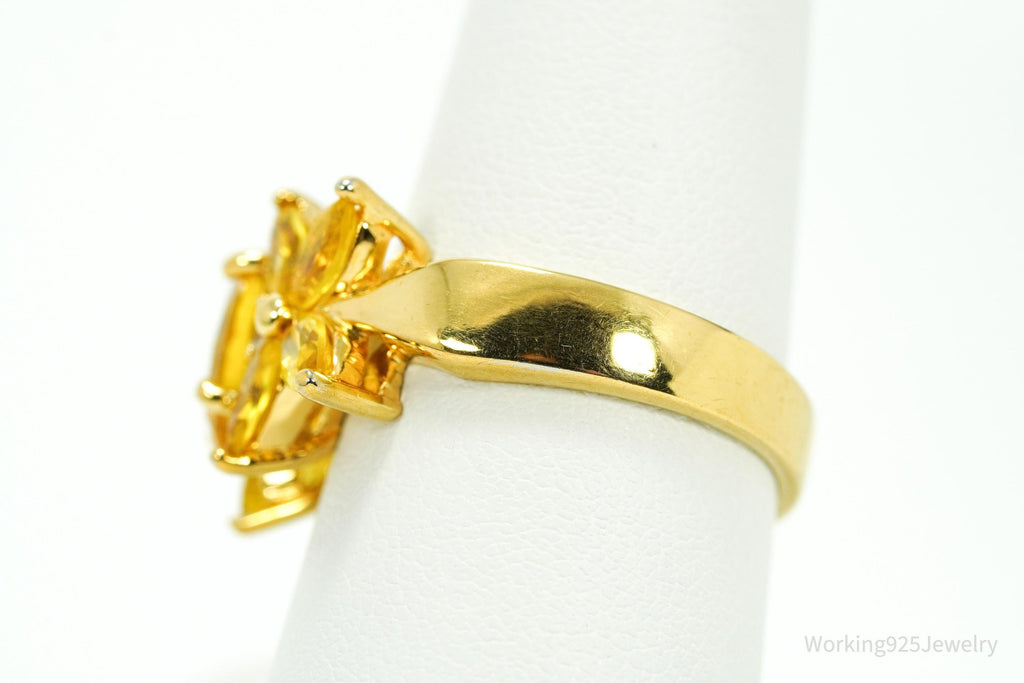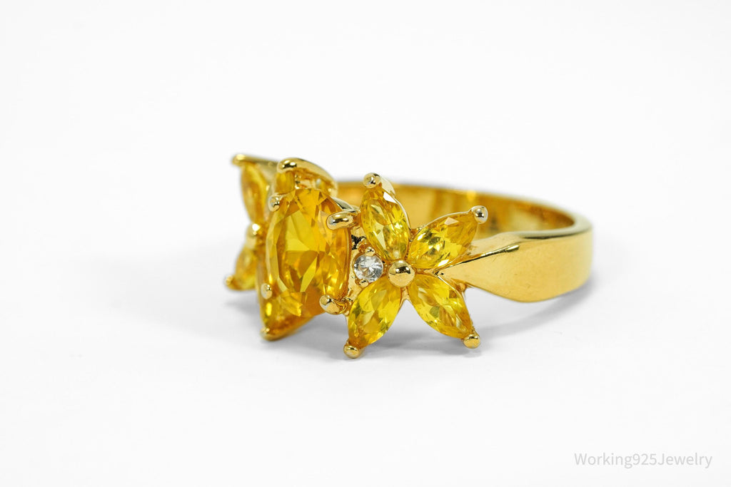Vintage Citrine & White Topaz Gold Over Sterling Silver Ring - Size 9