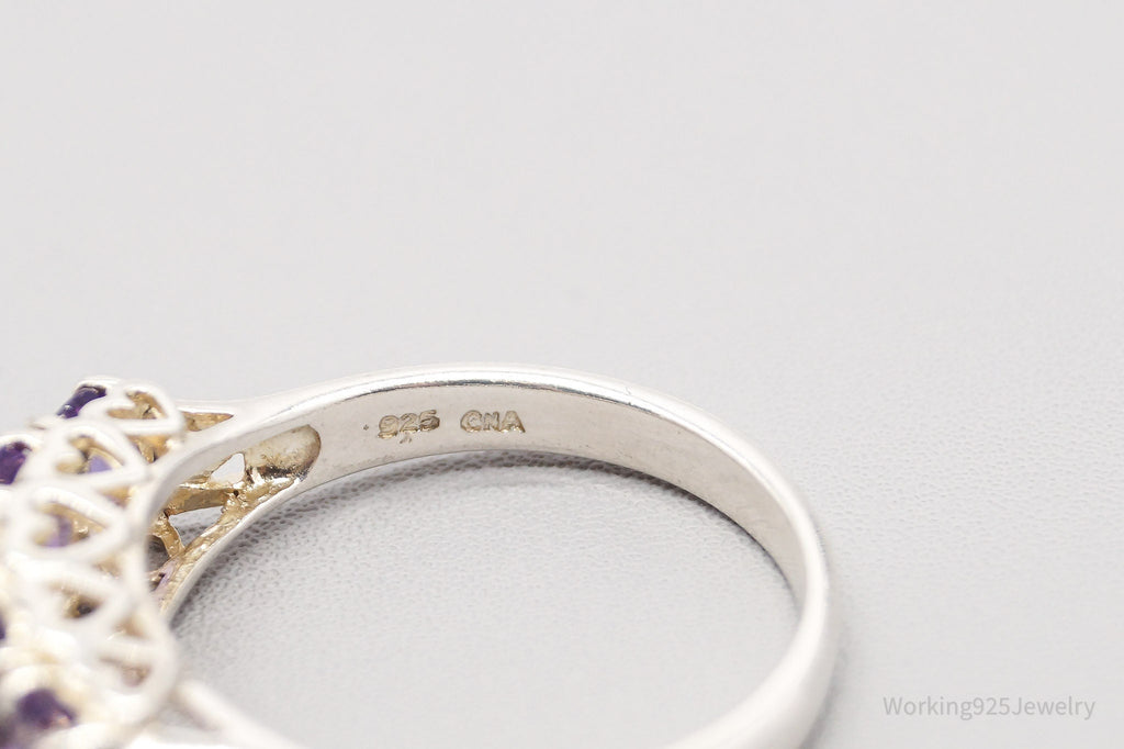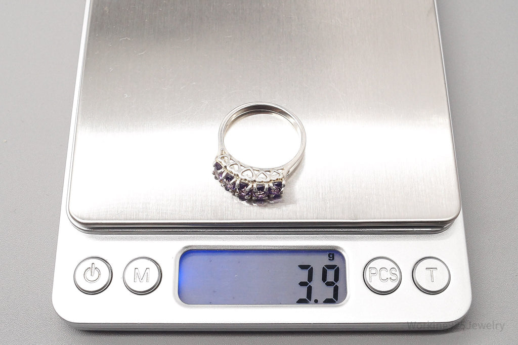 Vintage CNA Amethyst Hearts Designs Sterling Silver Ring - Size 10
