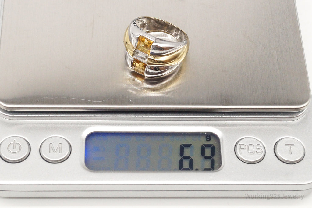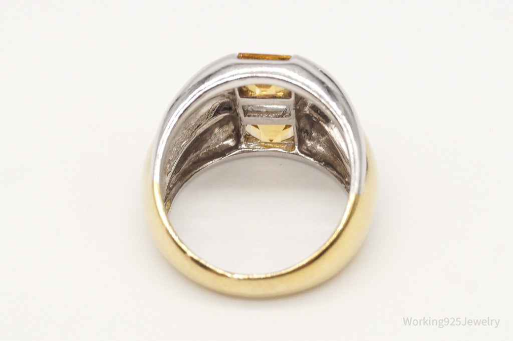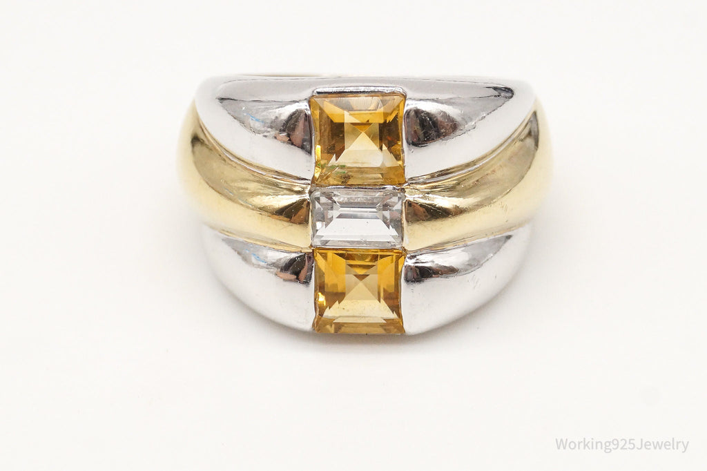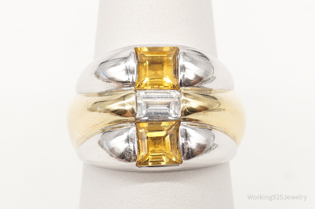 Vintage CNA Citrine Cubic Zirconia Gold Vermeil Sterling Silver Ring - Size 6