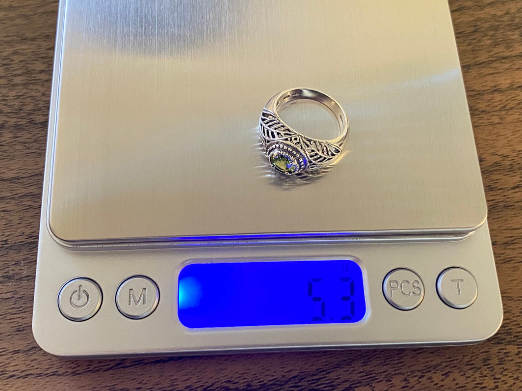 Vintage CNA Peridot Filigree Sterling Silver Ring - Size 6
