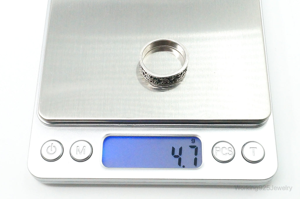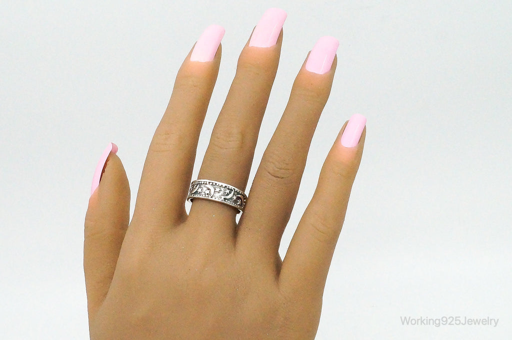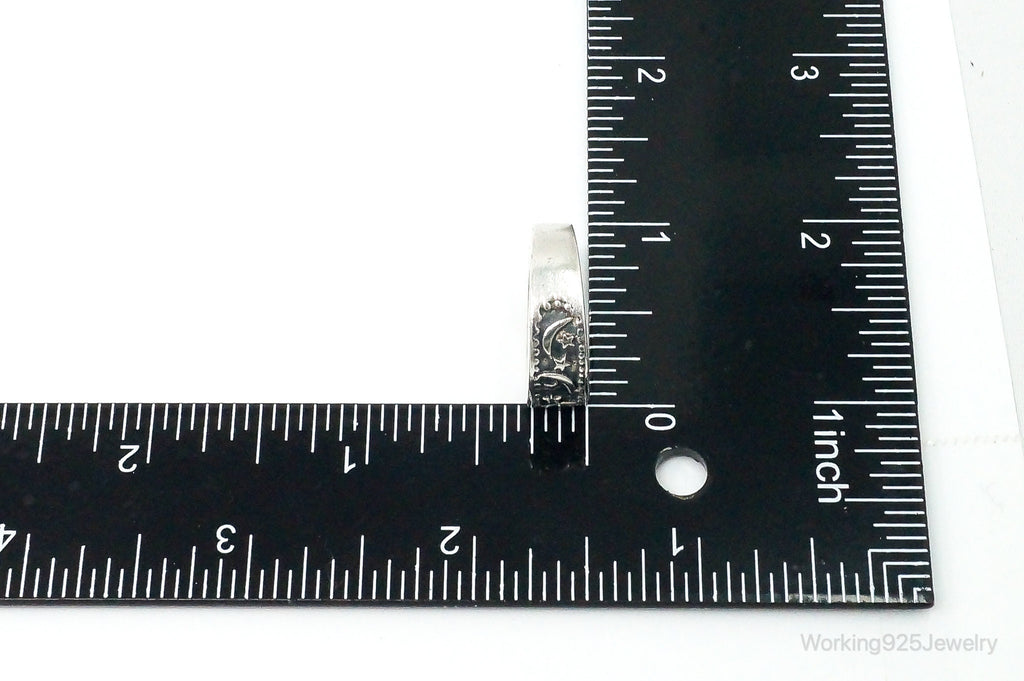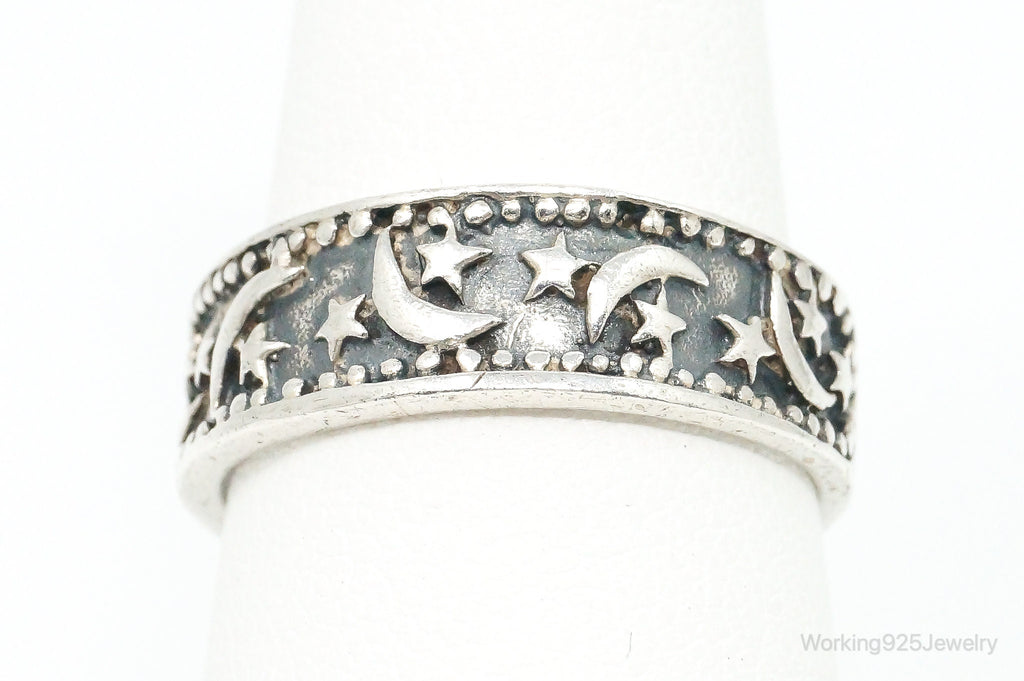 Vintage Cosmic Stars & Moon Sterling Silver Band Ring Size 8.5