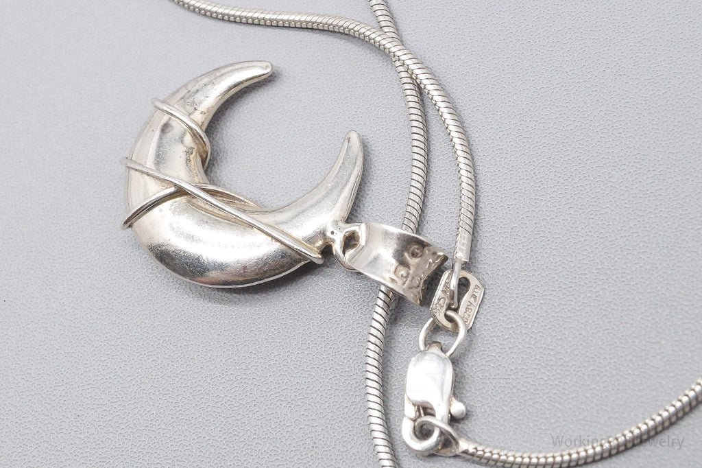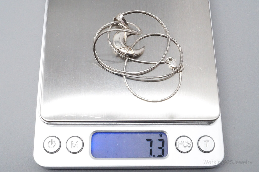 Vintage Crescent Moon Sterling Silver Necklace 18"