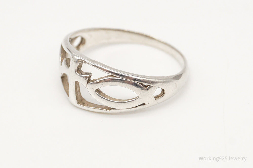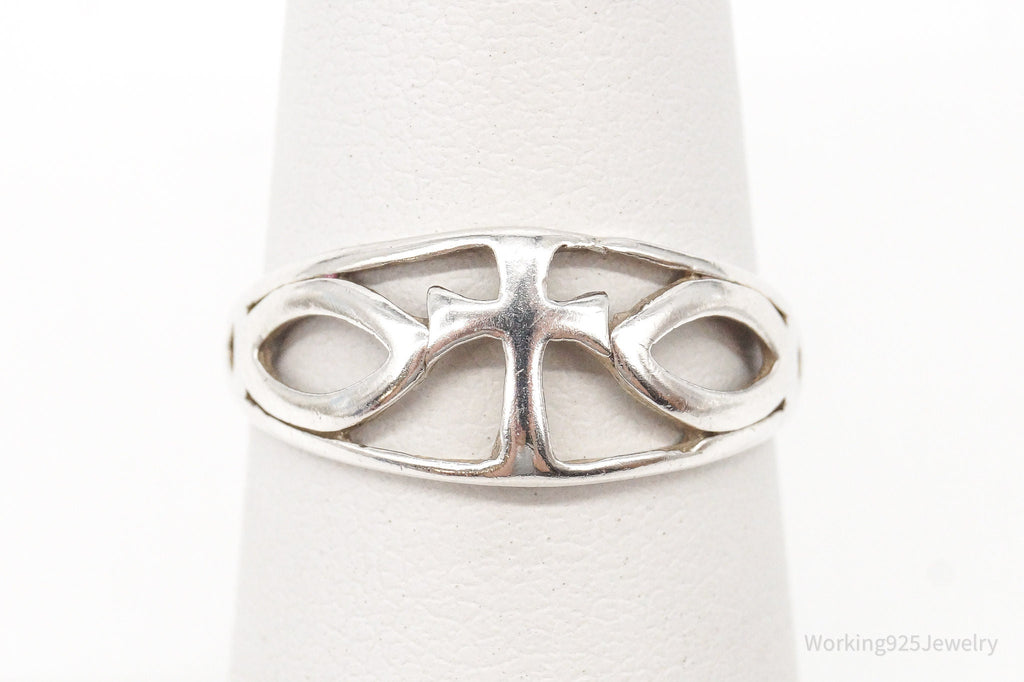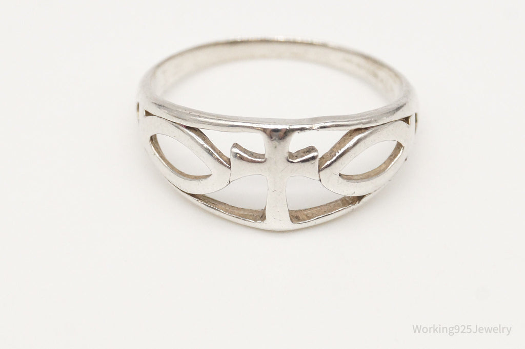 Vintage Cross Cut Out Silver Band Ring - Size 5.75