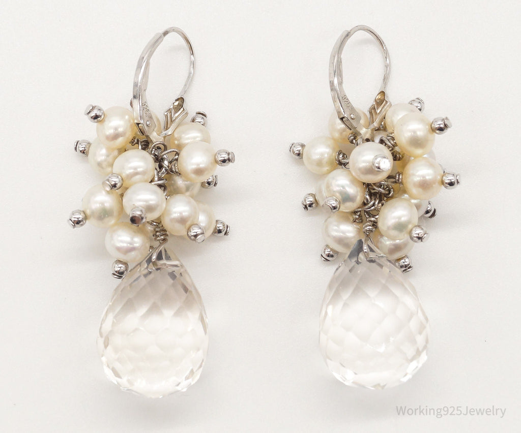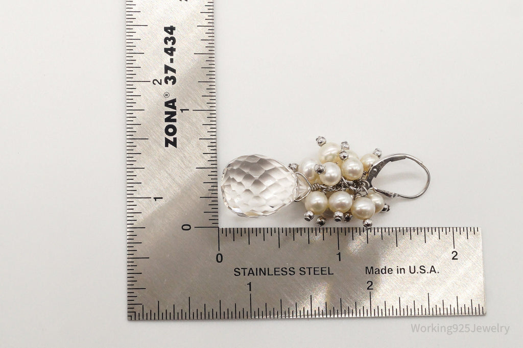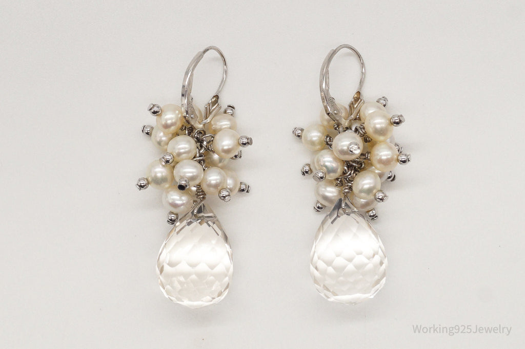 Vintage Crystal Quartz Pearl Sterling Silver Earrings