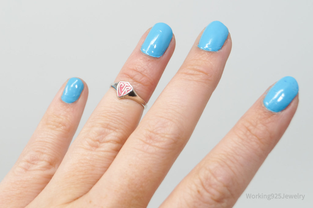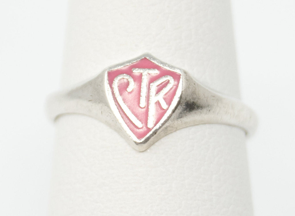 Vintage CTR "Choose The Right" Shield Enamel Sterling Silver Ring - Size 2.75