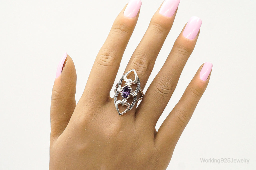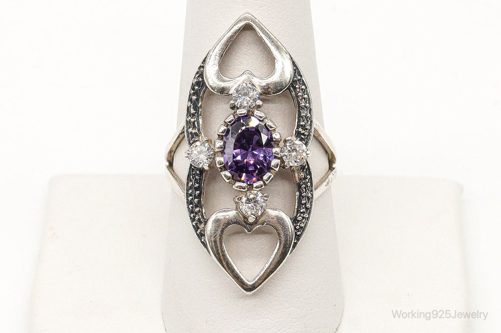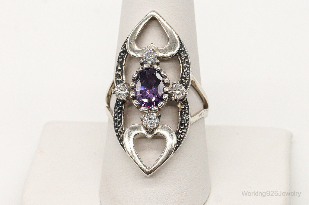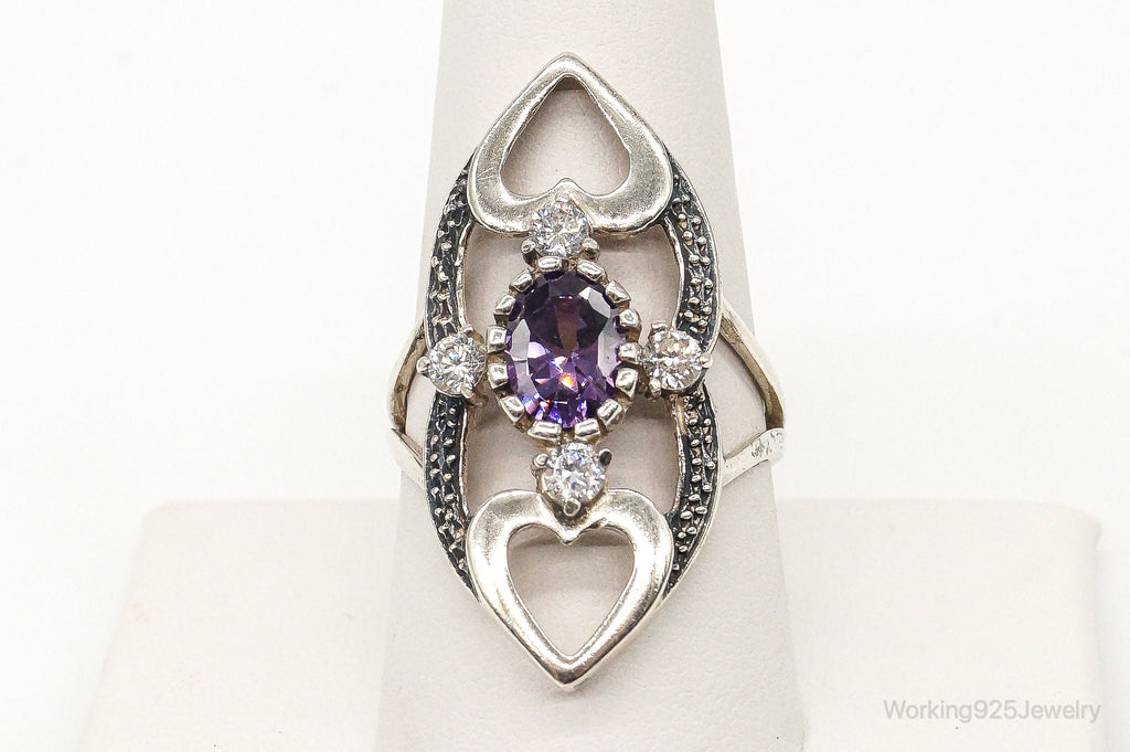 Vintage Cubic Zirconia Amethyst Sterling Silver Ring Size 9.25