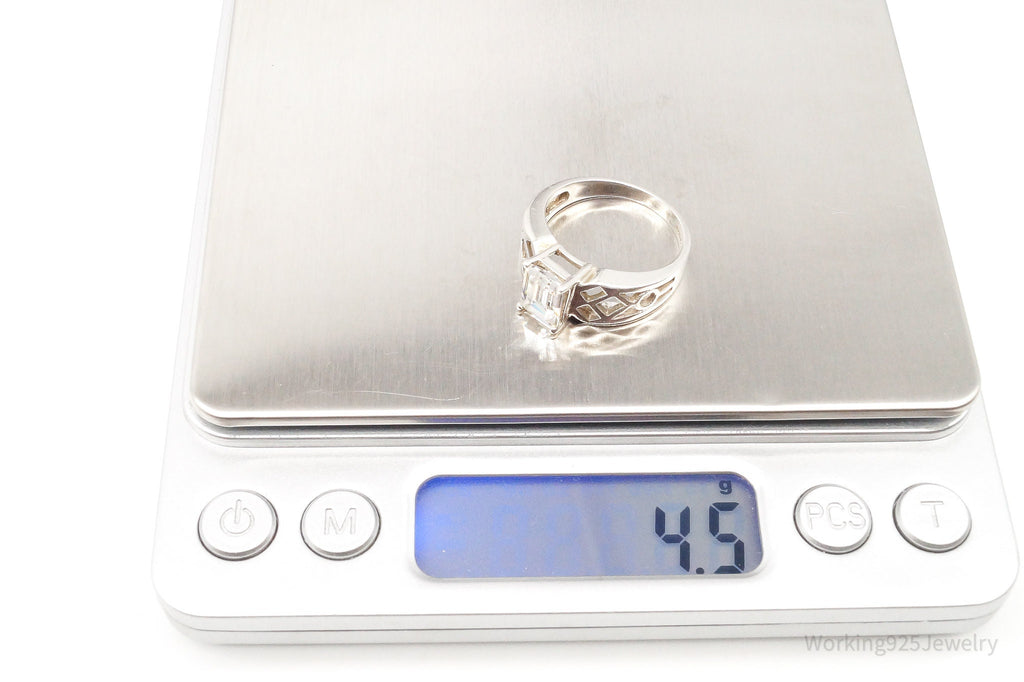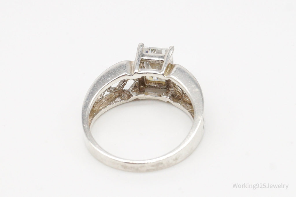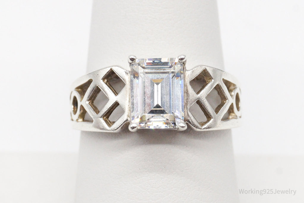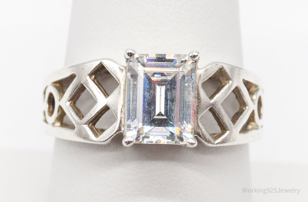 Vintage Cubic Zirconia Art Deco Sterling Silver Ring - Size 8