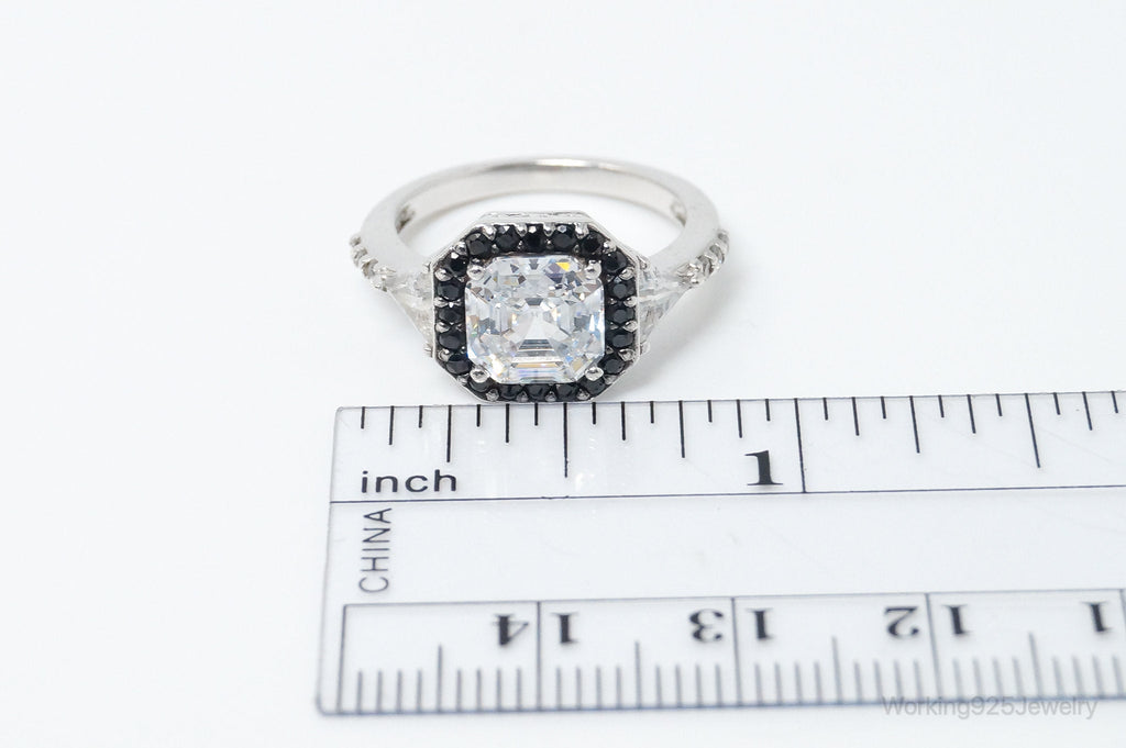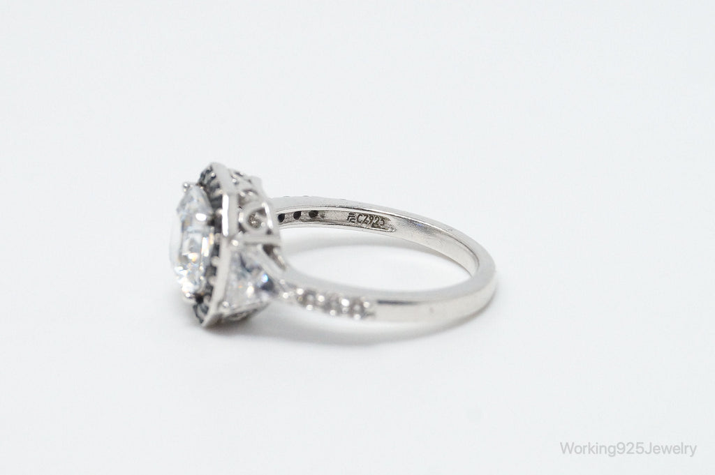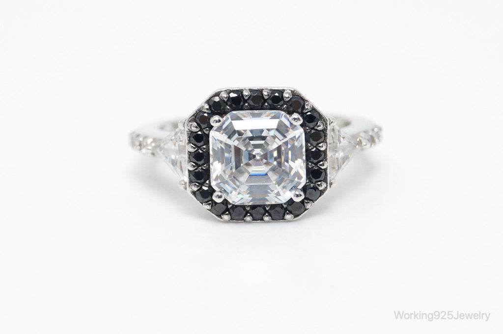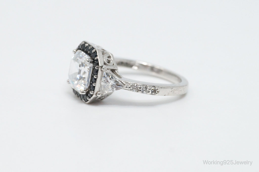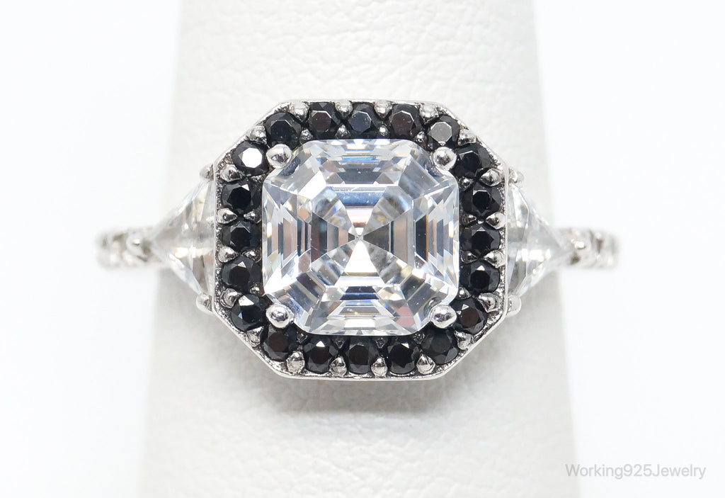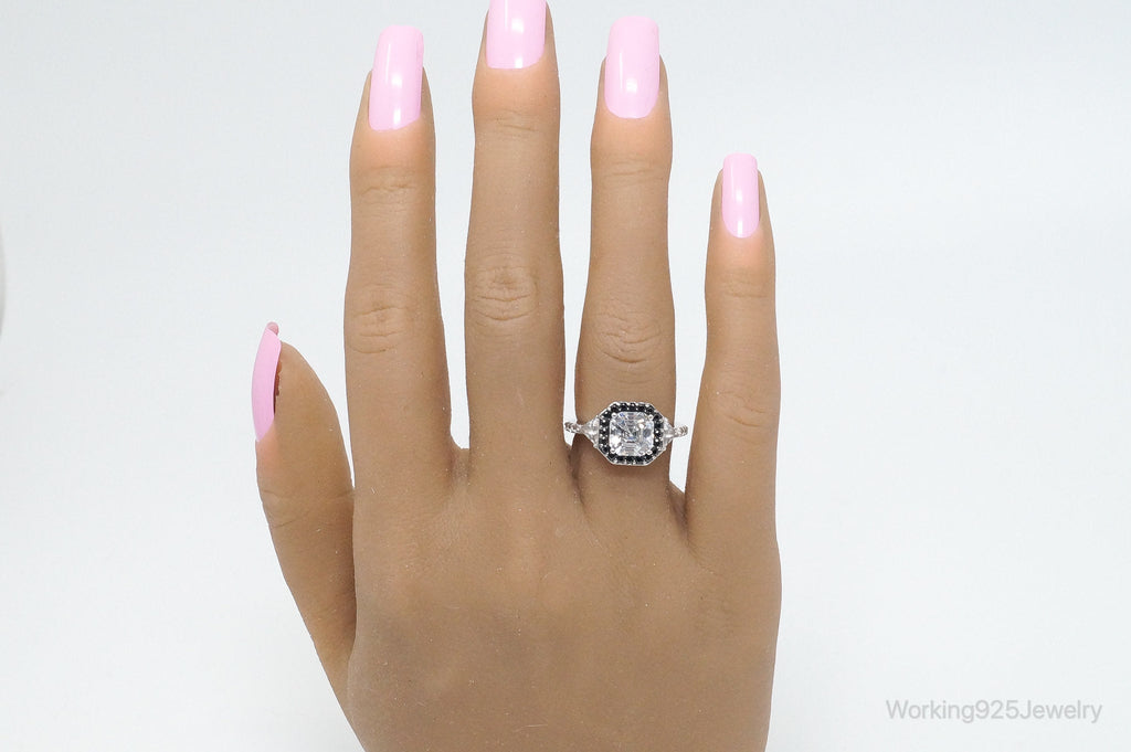Vintage Cubic Zirconia Black Onyx Sterling Silver Ring - Size 6