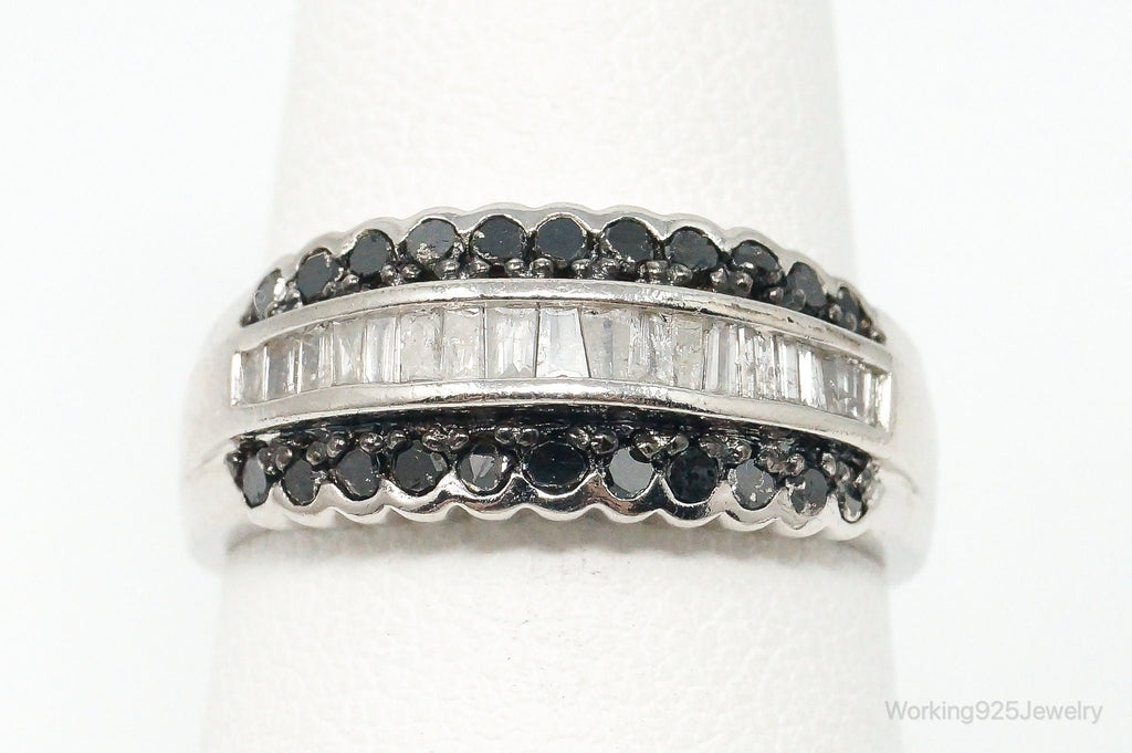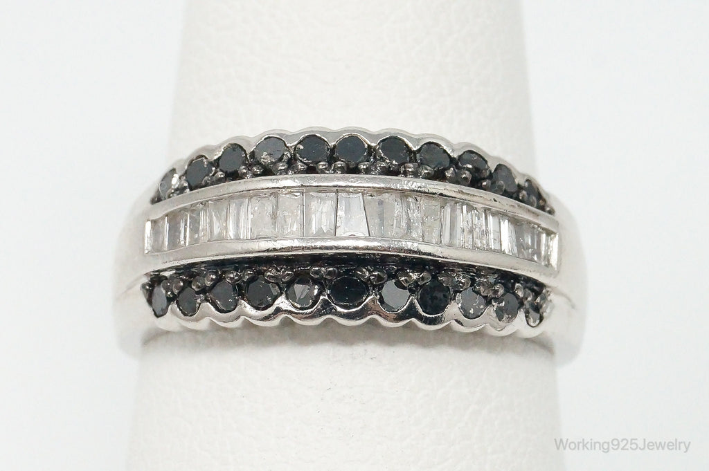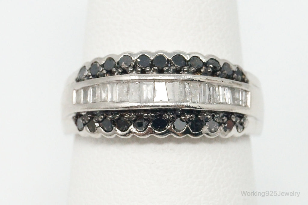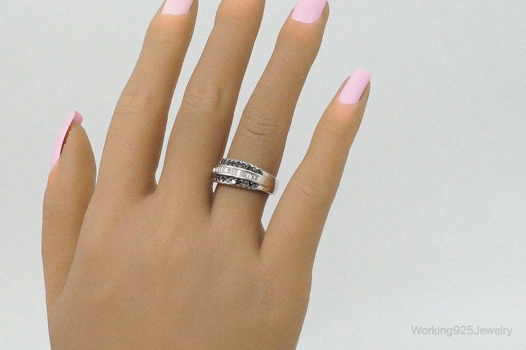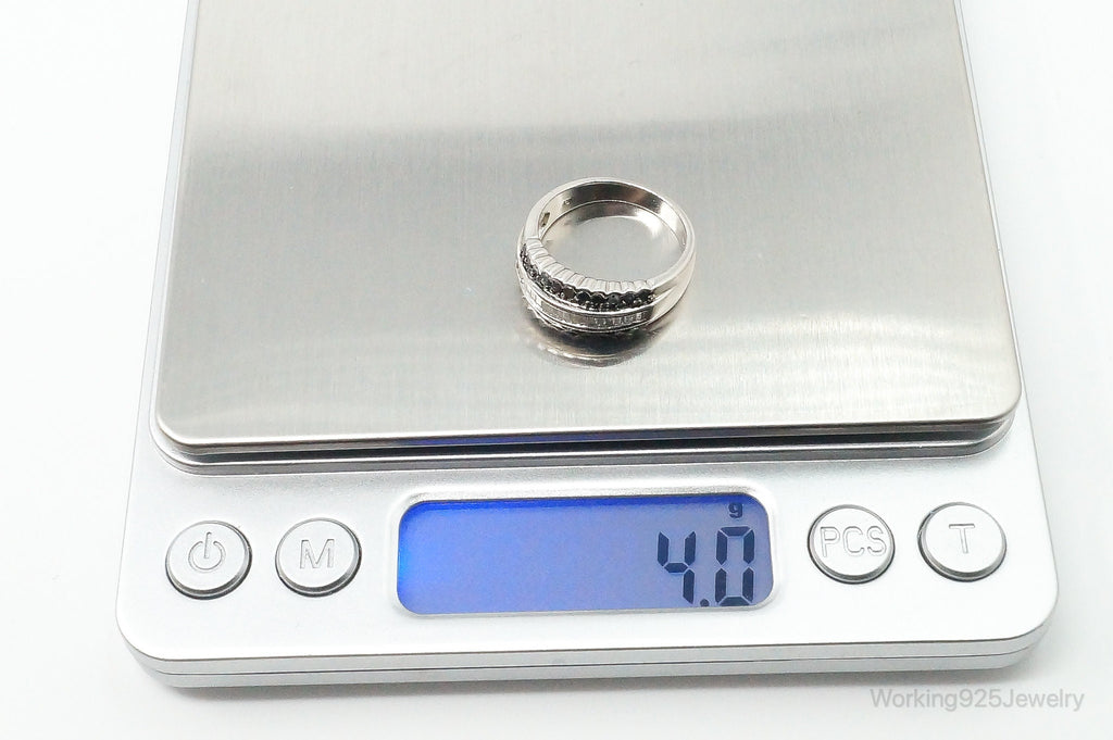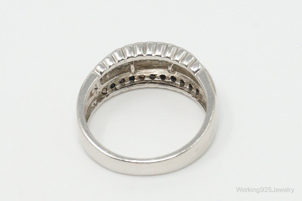 Vintage Cubic Zirconia Black Onyx Sterling Silver Ring - Size 7
