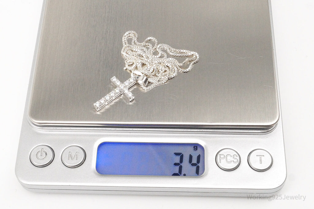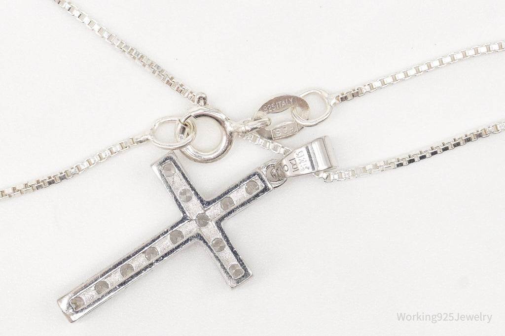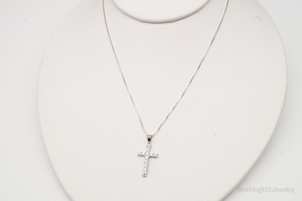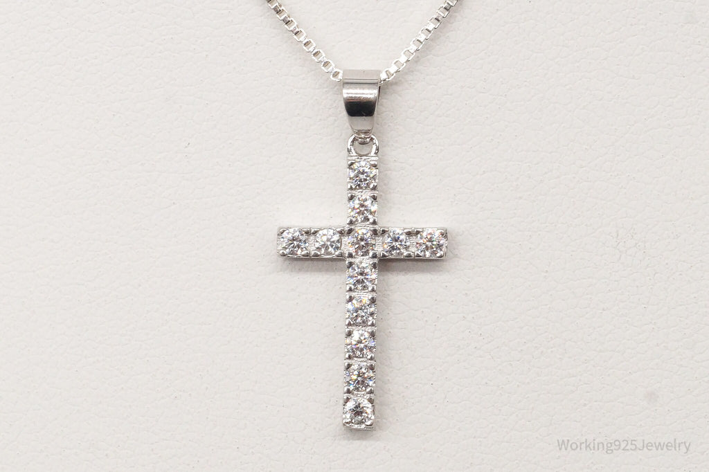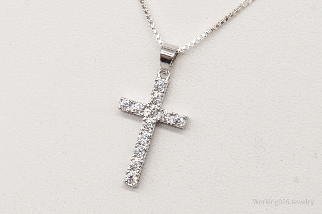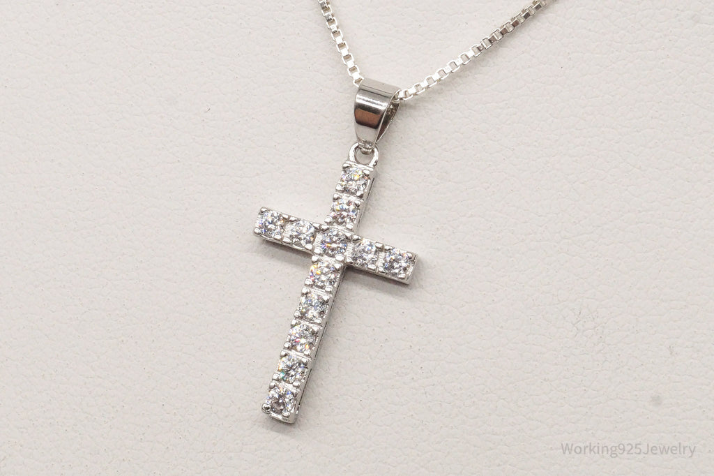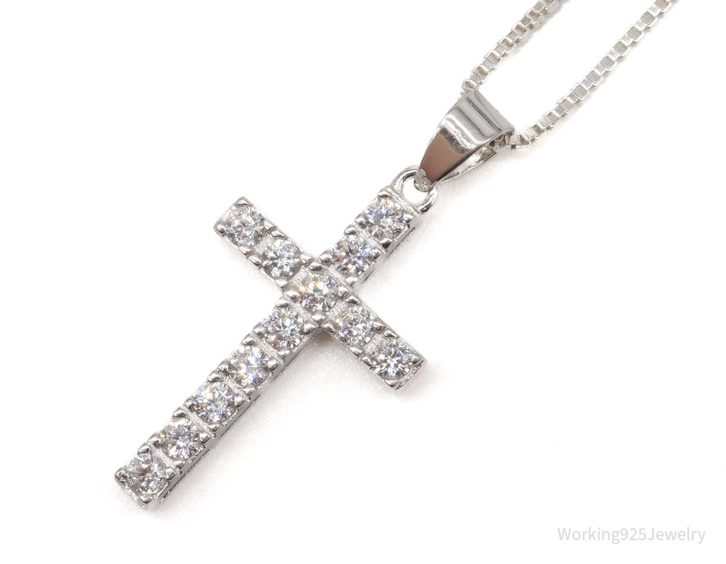 Vintage Cubic Zirconia Cross Sterling Silver Necklace