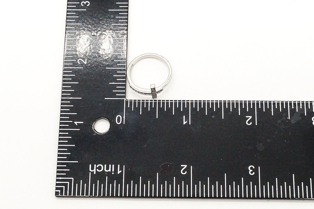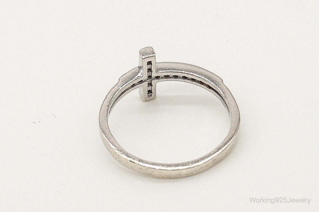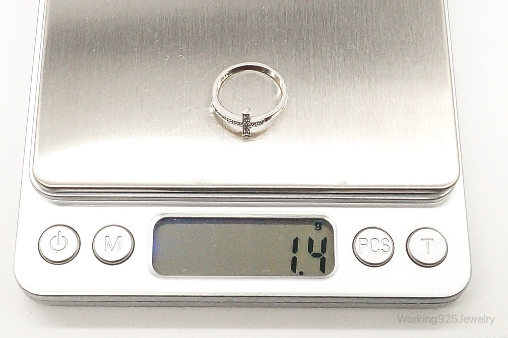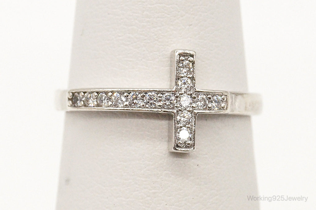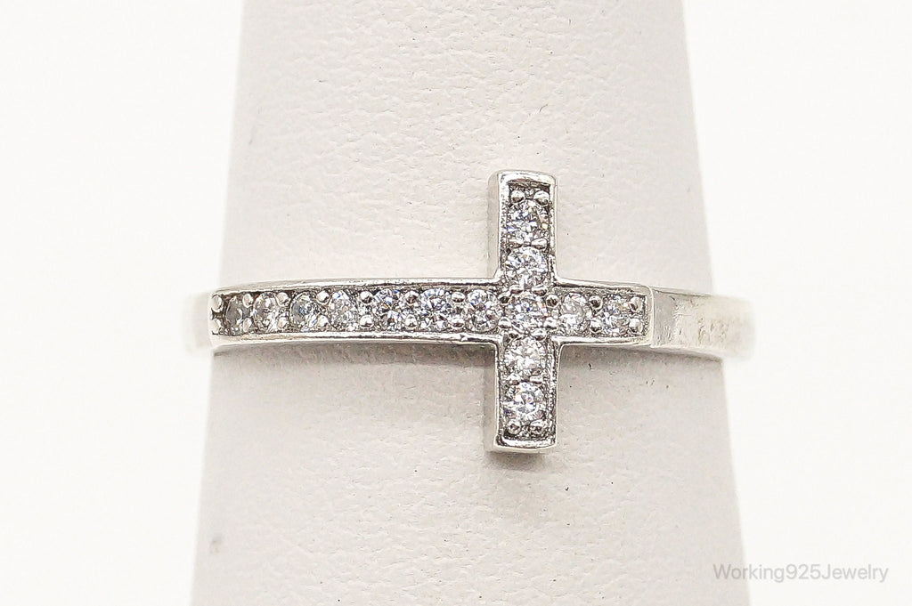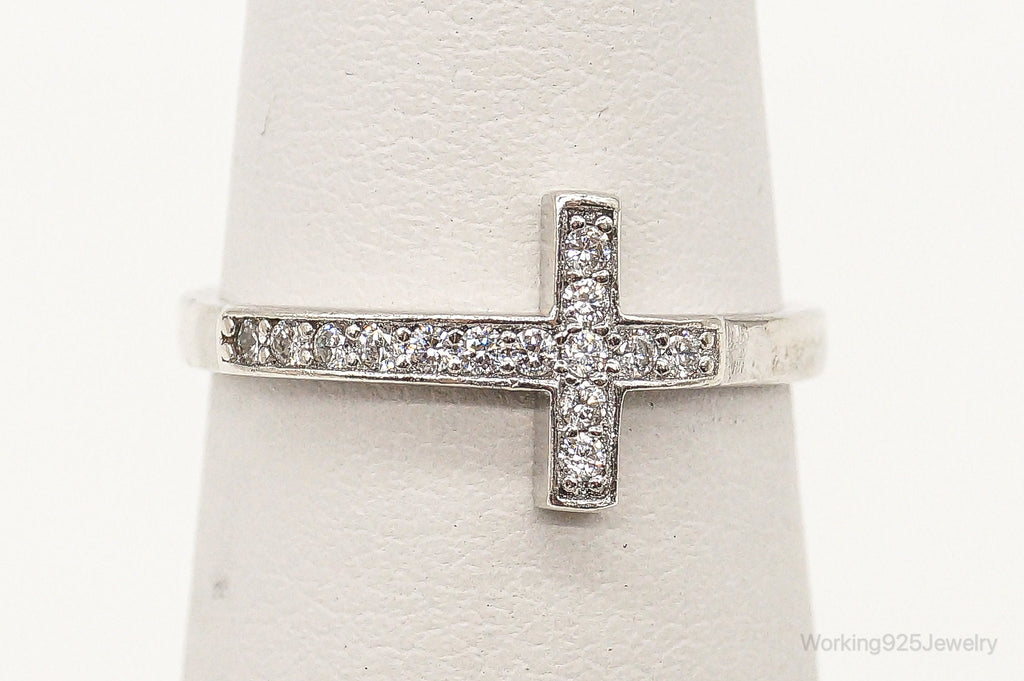 Vintage Cubic Zirconia Cross Sterling Silver Ring - Size 4.75