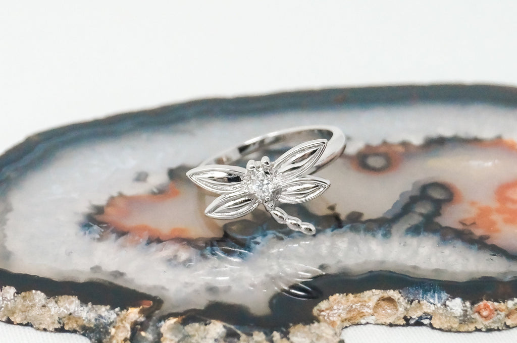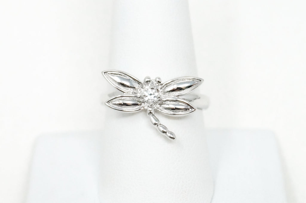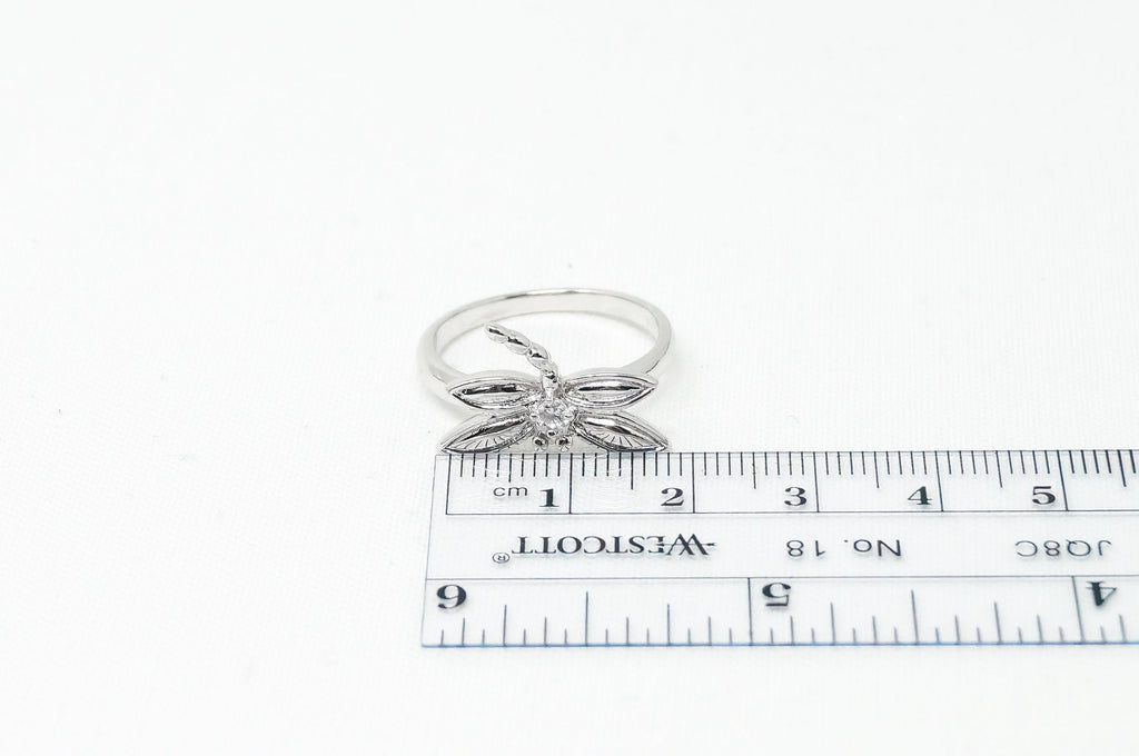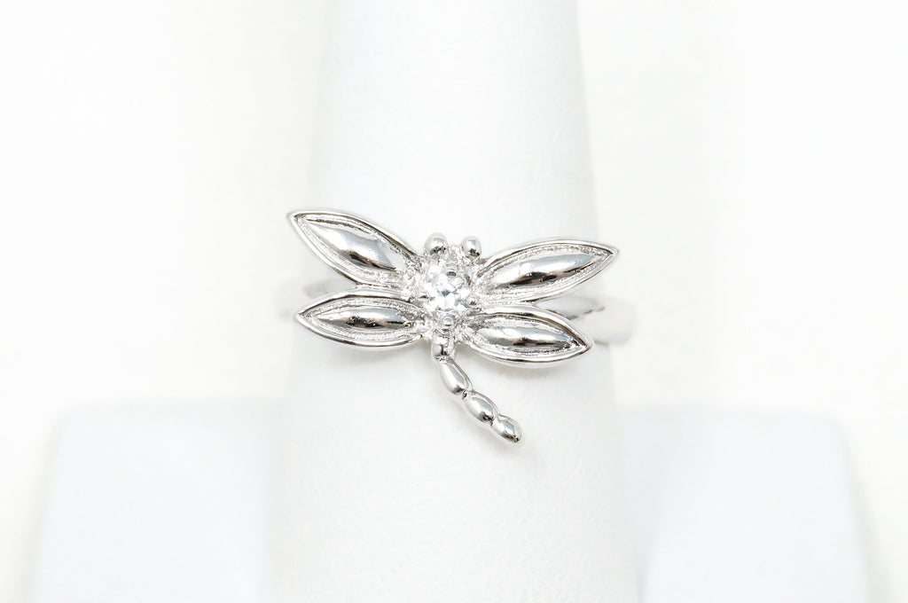 Vintage Cubic Zirconia Dragonfly Sterling Silver Ring - Sz 9 -784203114