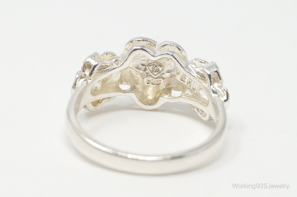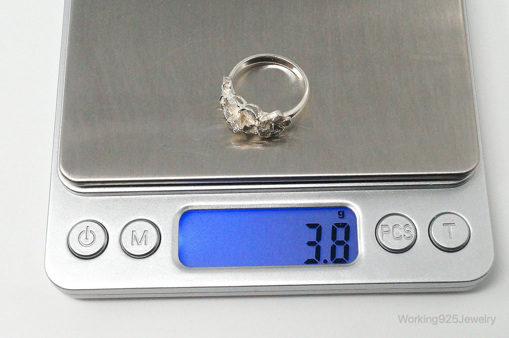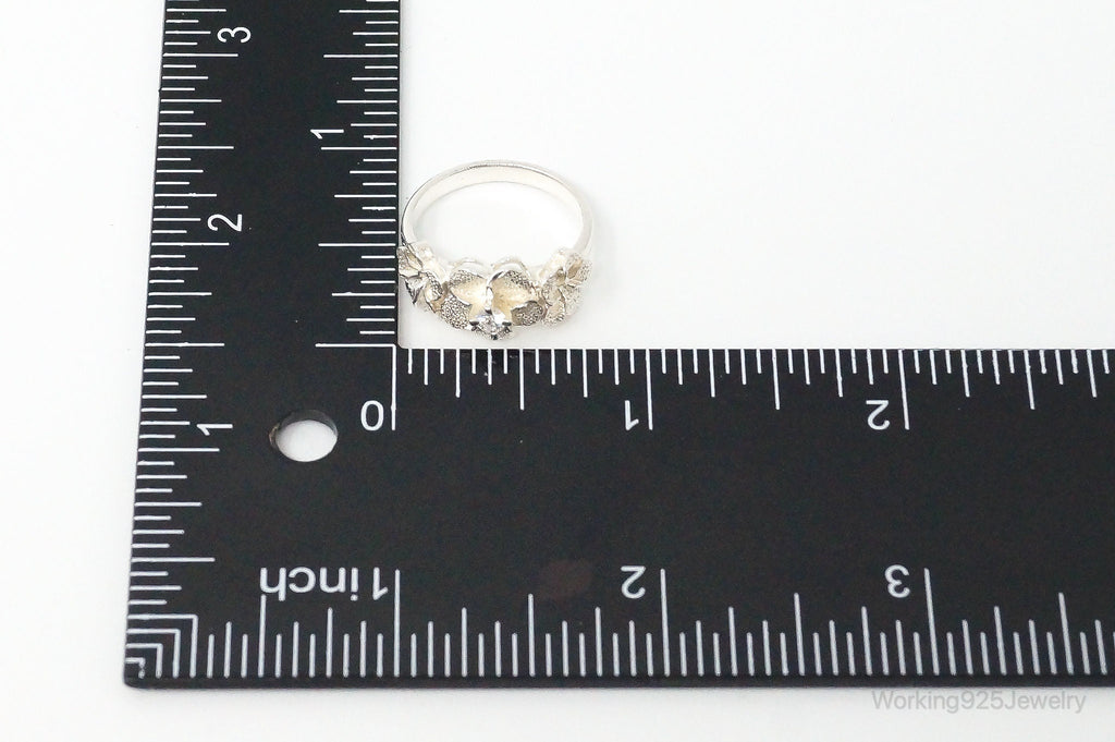 Vintage Cubic Zirconia Flowers Sterling Silver Ring - Size 7