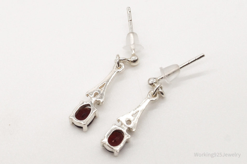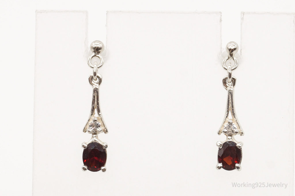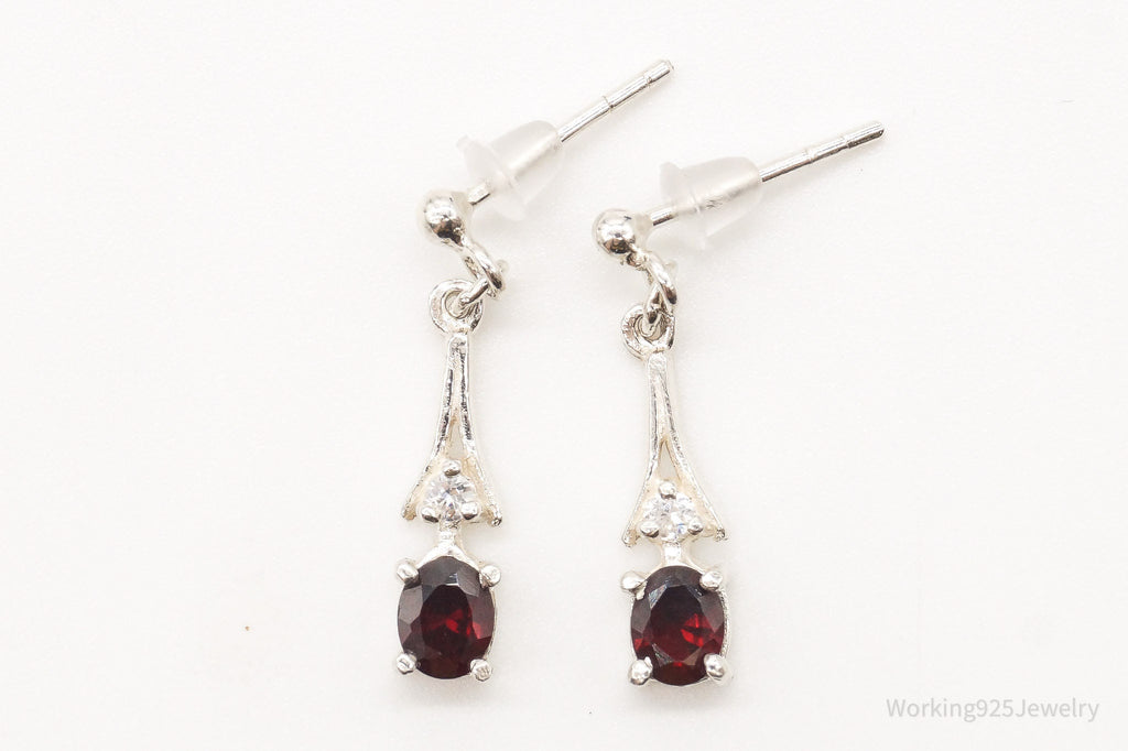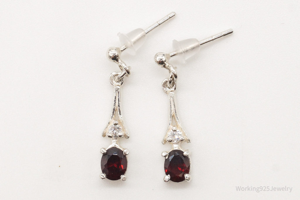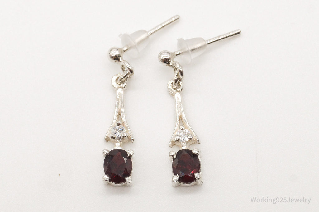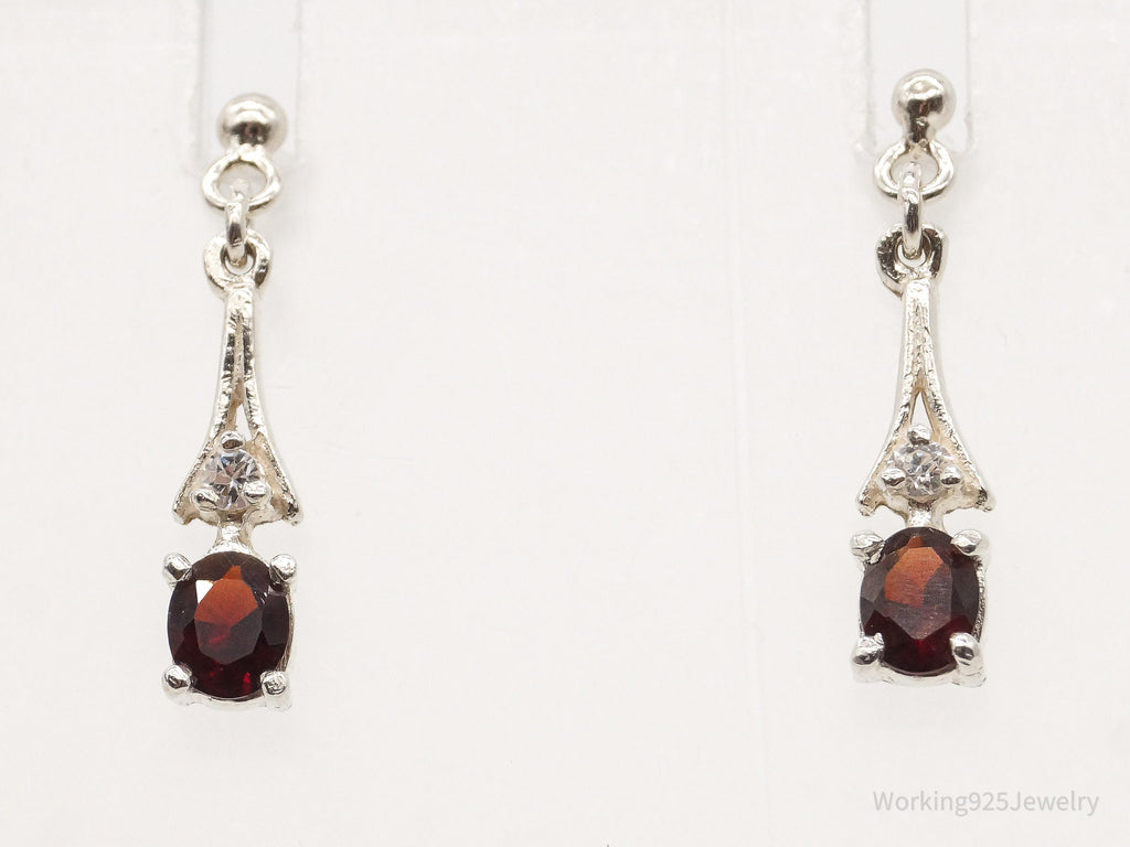 Vintage Cubic Zirconia Garnet Silver Earrings