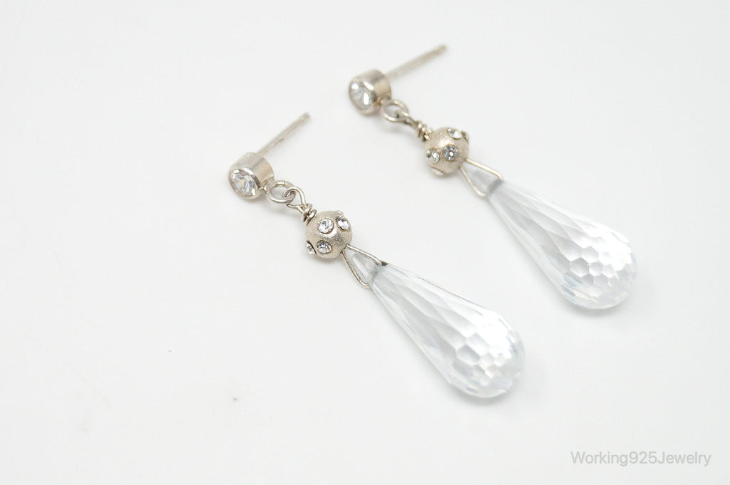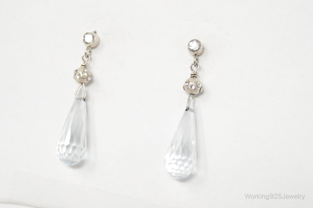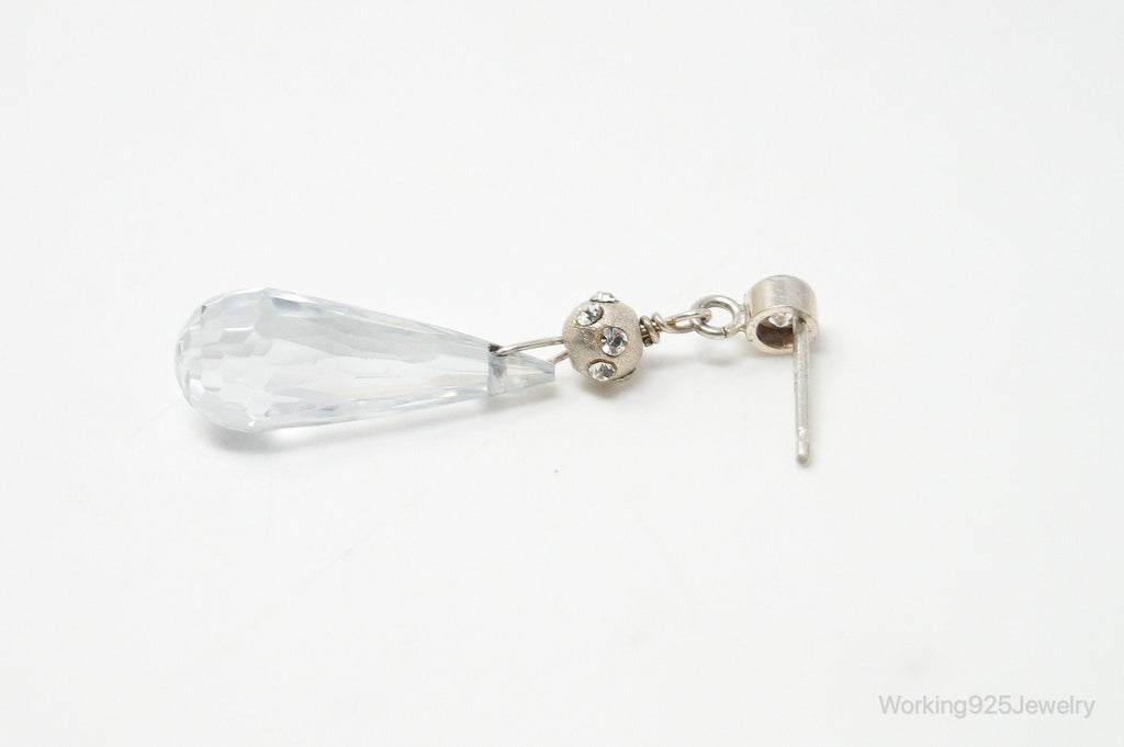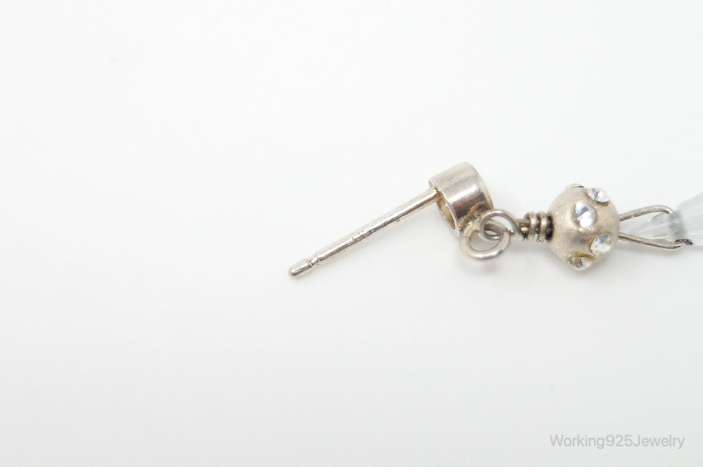 Vintage Cubic Zirconia Glass Sterling Silver Earrings