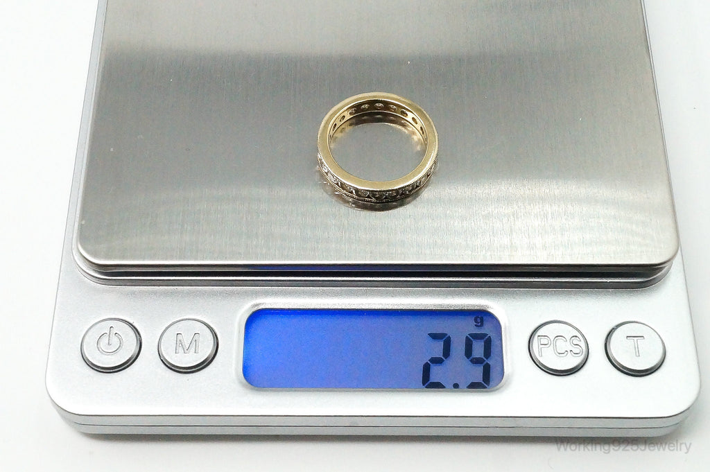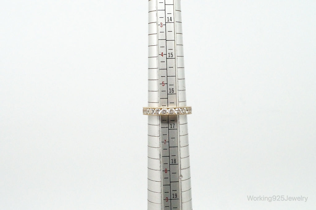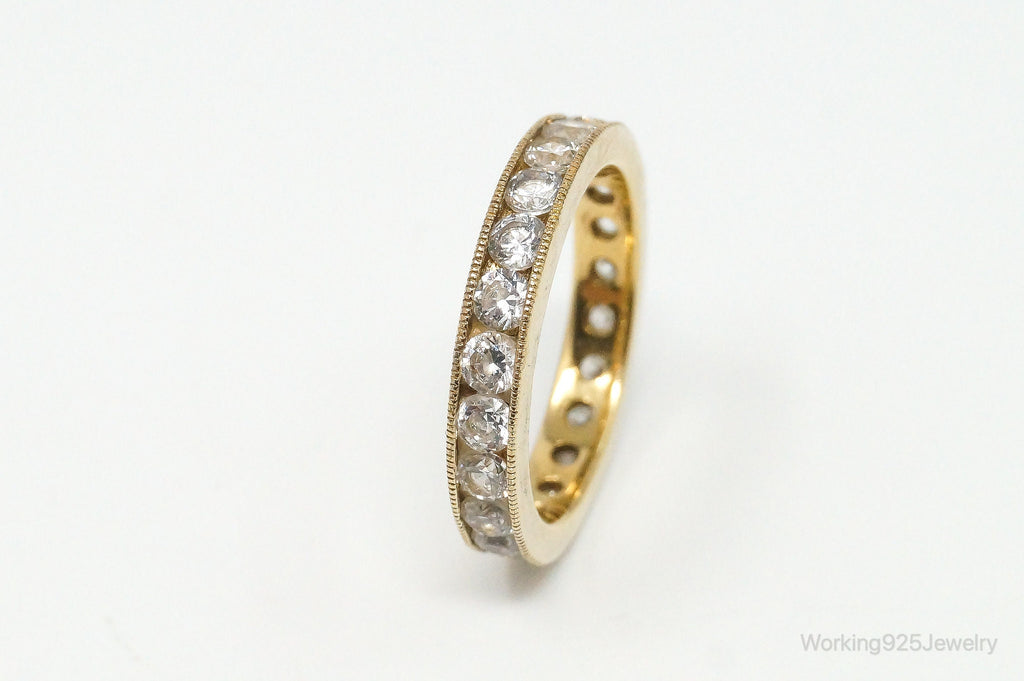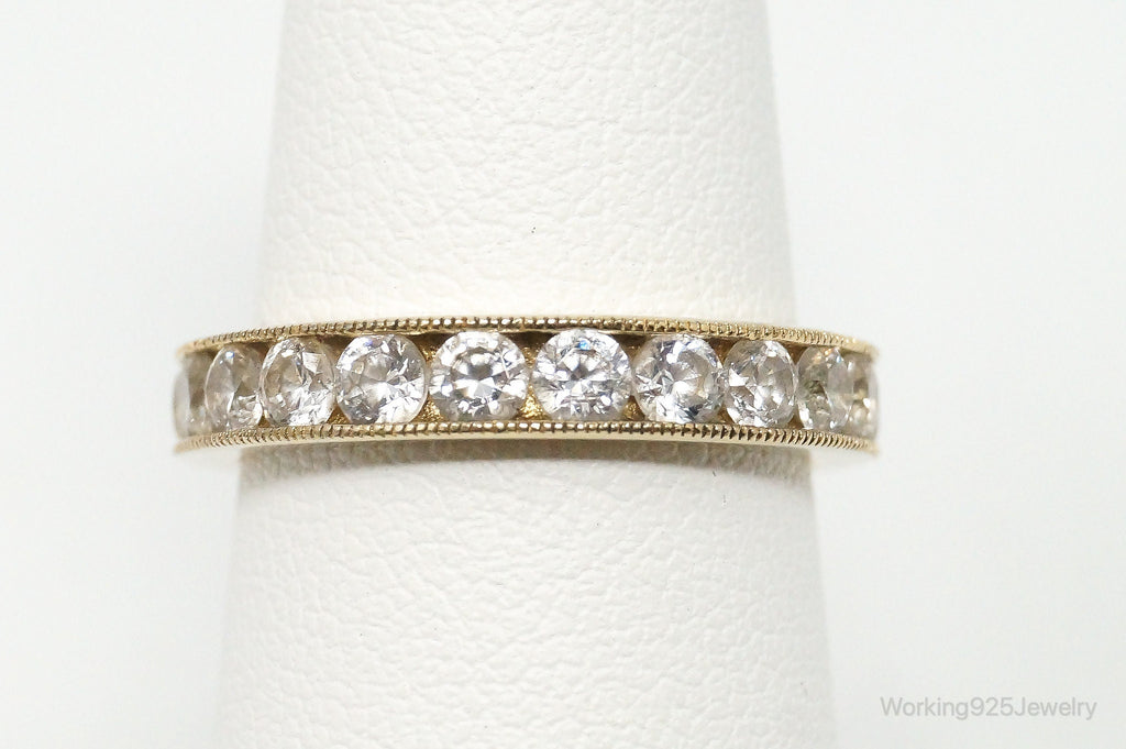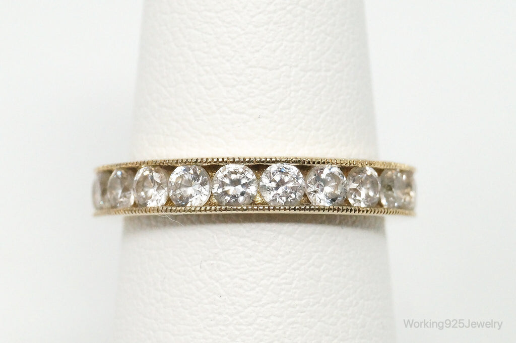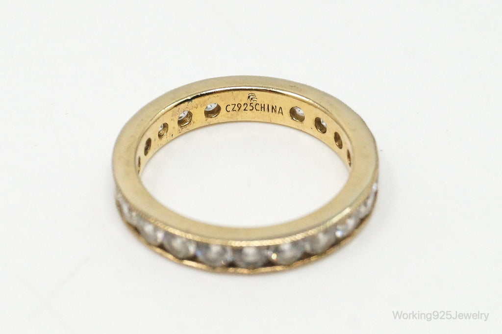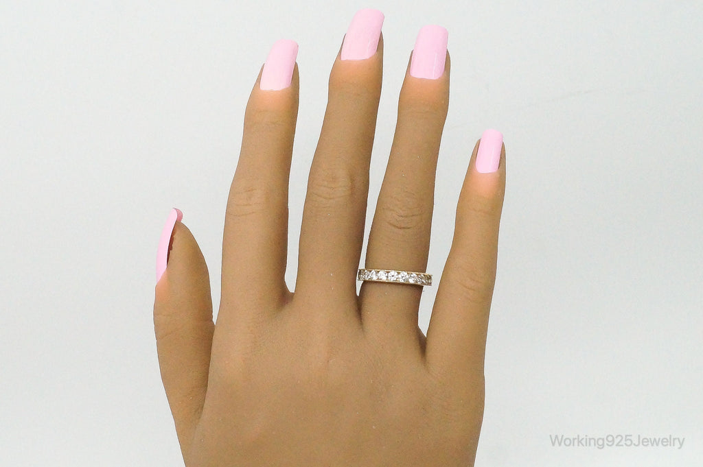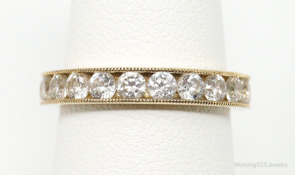 Vintage Cubic Zirconia Gold Vermeil Sterling Silver Band Ring - Size 6