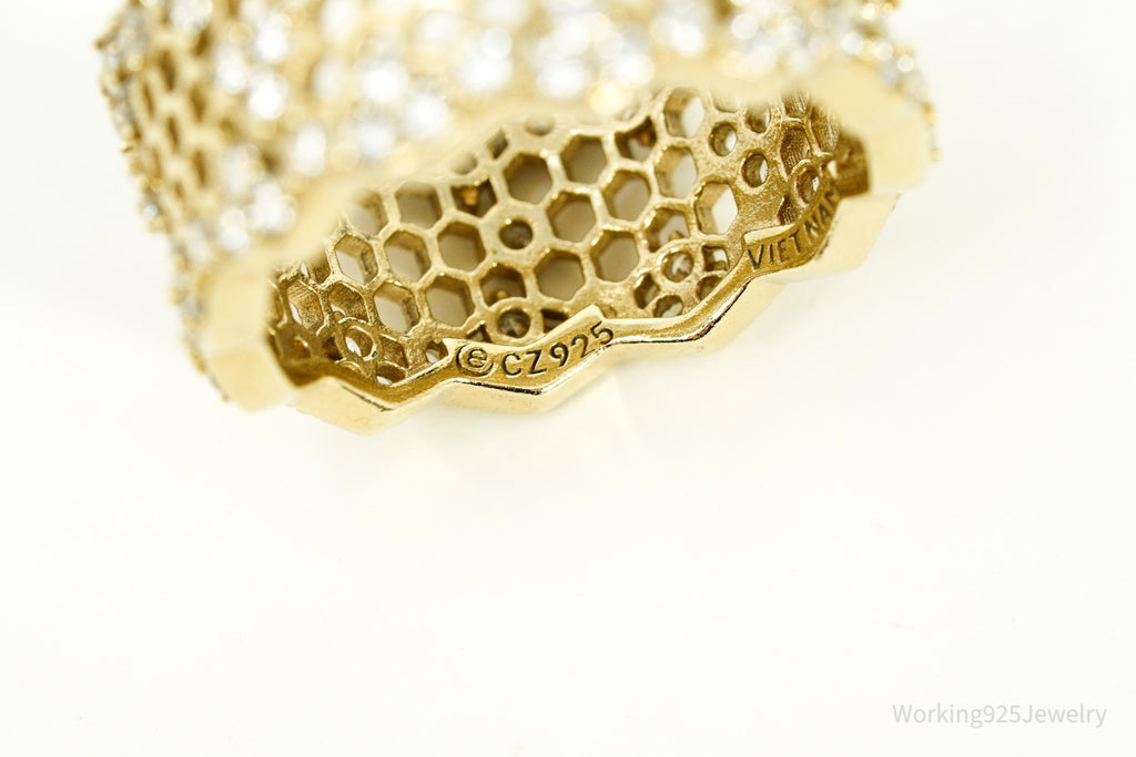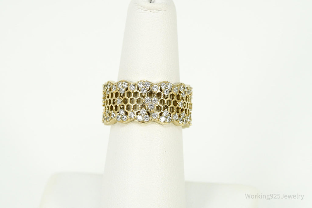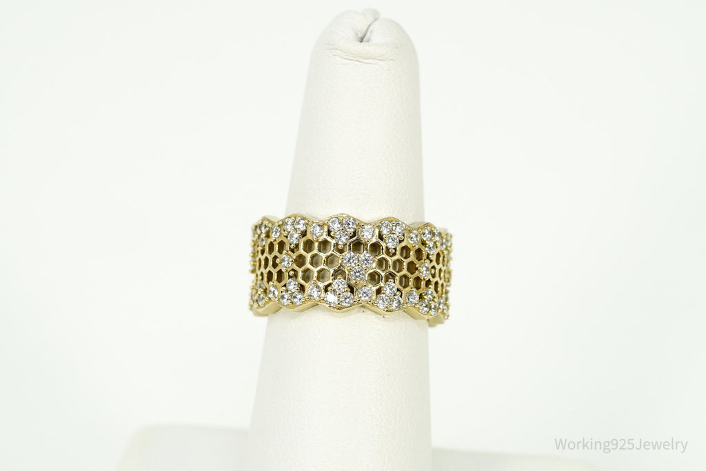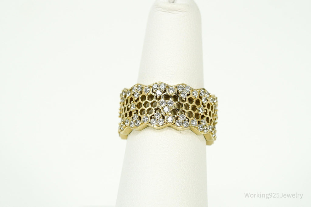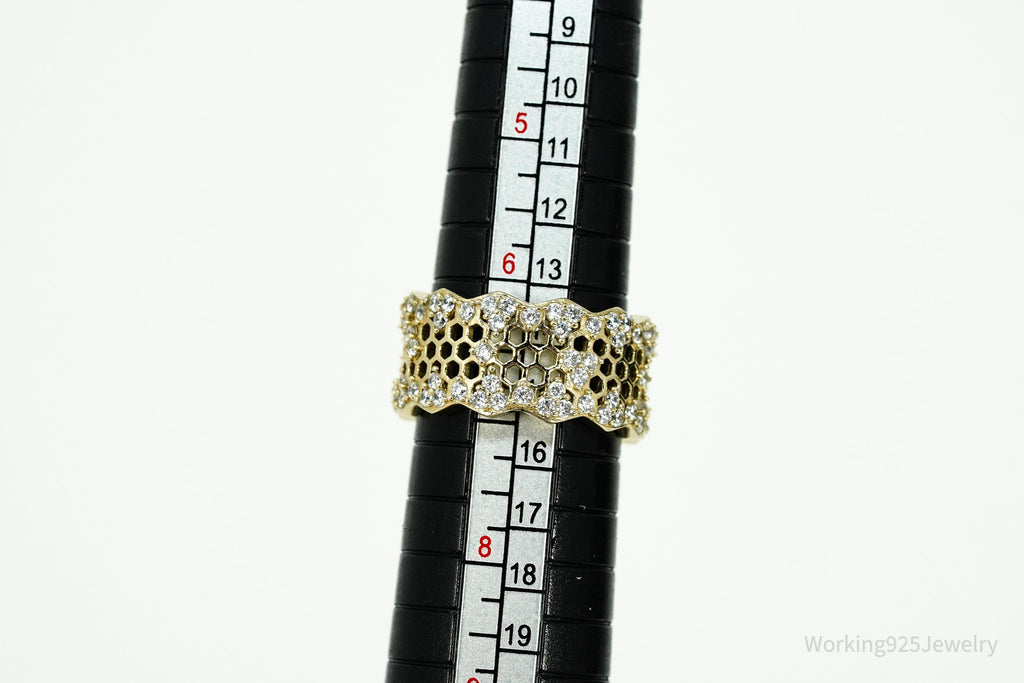 Vintage Cubic Zirconia Gold Vermeil Sterling Silver Honeycomb Lace Ring - Size 7