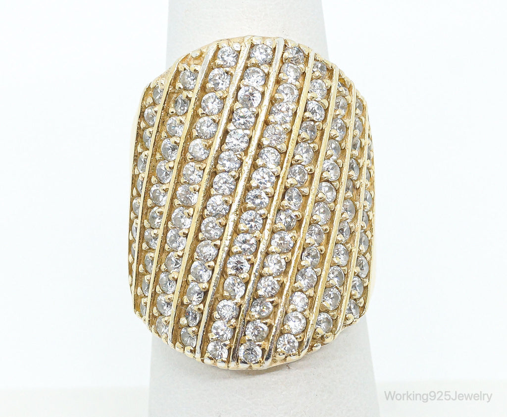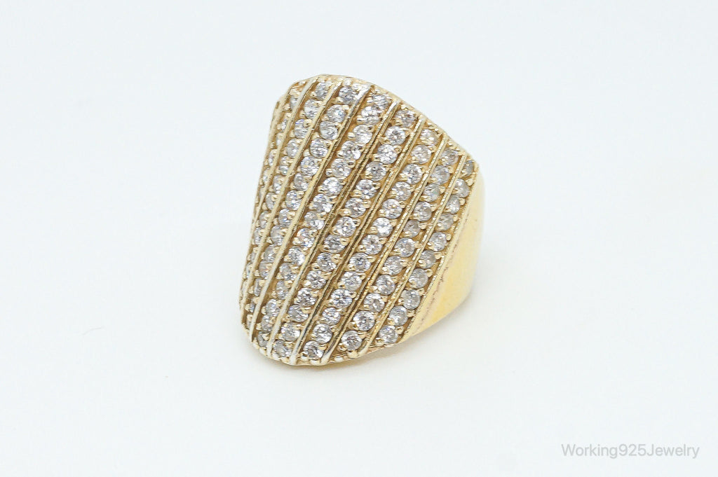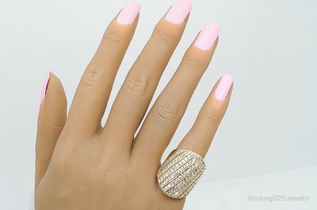Vintage Cubic Zirconia Gold Vermeil Sterling Silver Ring - Size 6