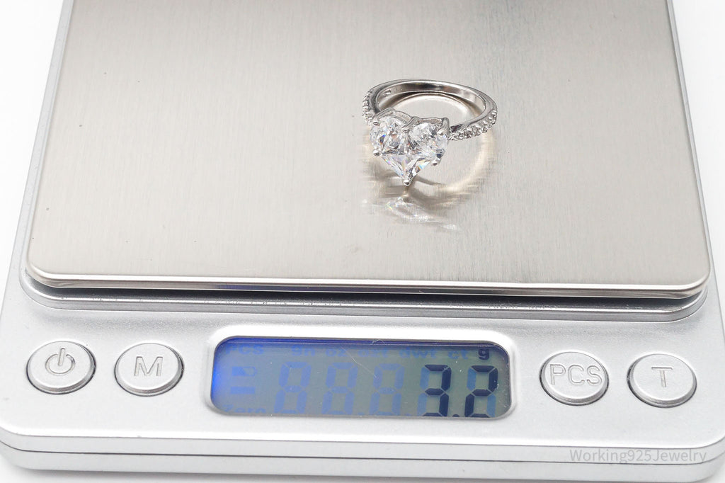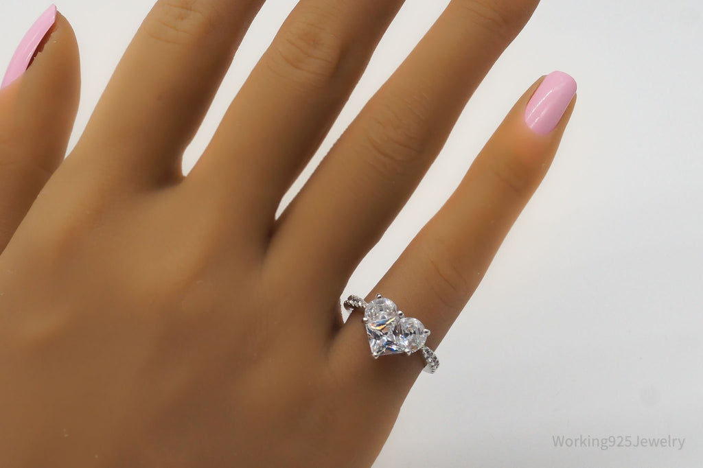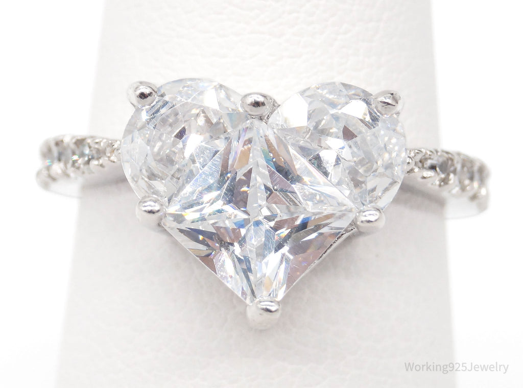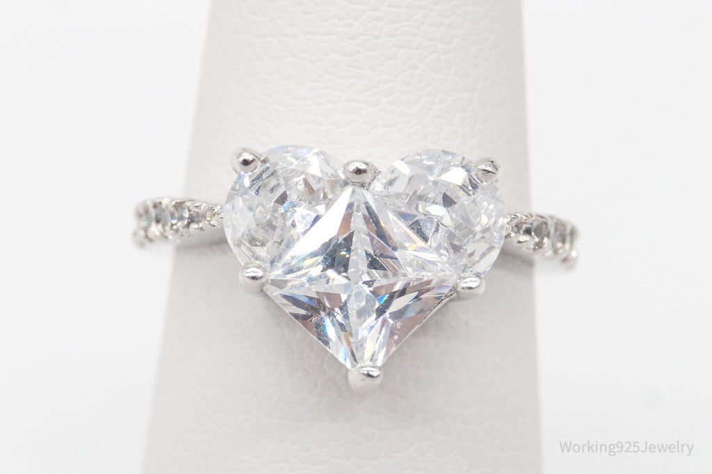 Vintage Cubic Zirconia Heart Sterling Silver Ring - Size 5.75