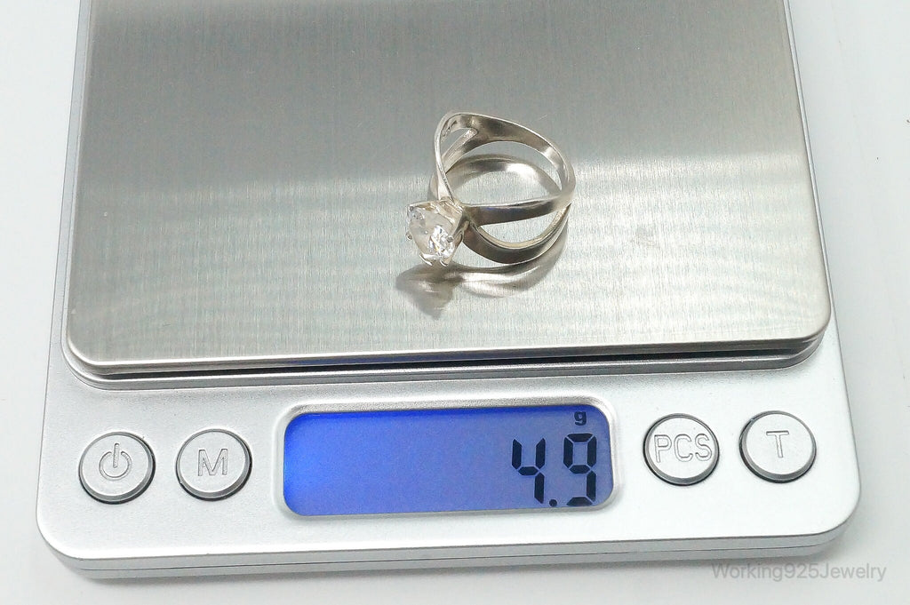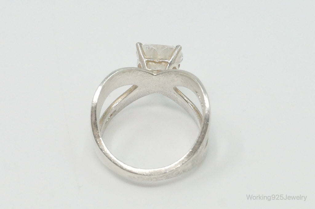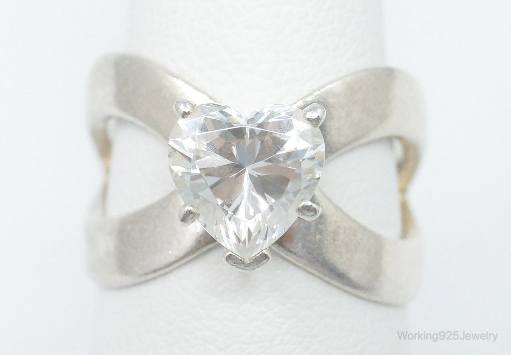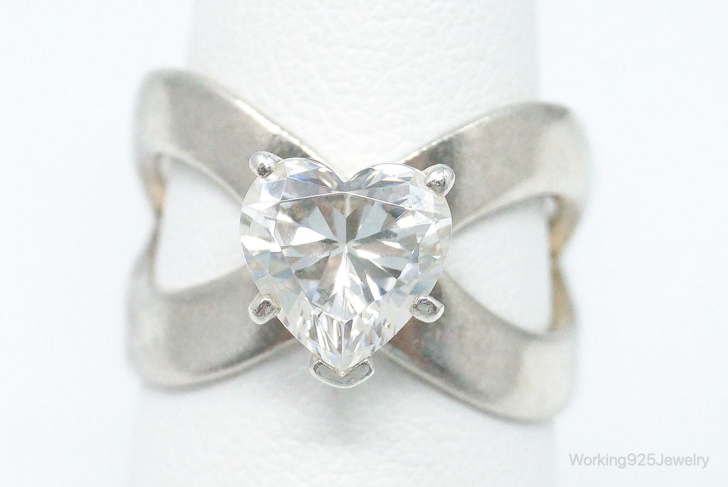 Vintage Cubic Zirconia Heart Sterling Silver Ring - Size 6