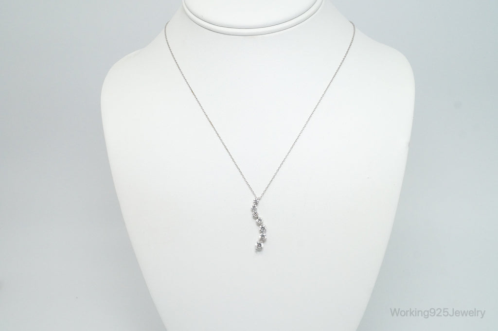 Vintage Cubic Zirconia Journey Necklace Sterling Silver - 18 Inch Chain