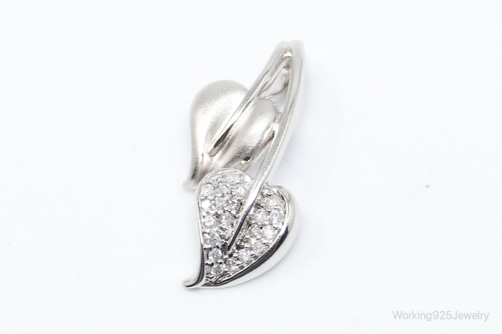 Vintage Cubic Zirconia Leaves Sterling Silver Necklace Pendant