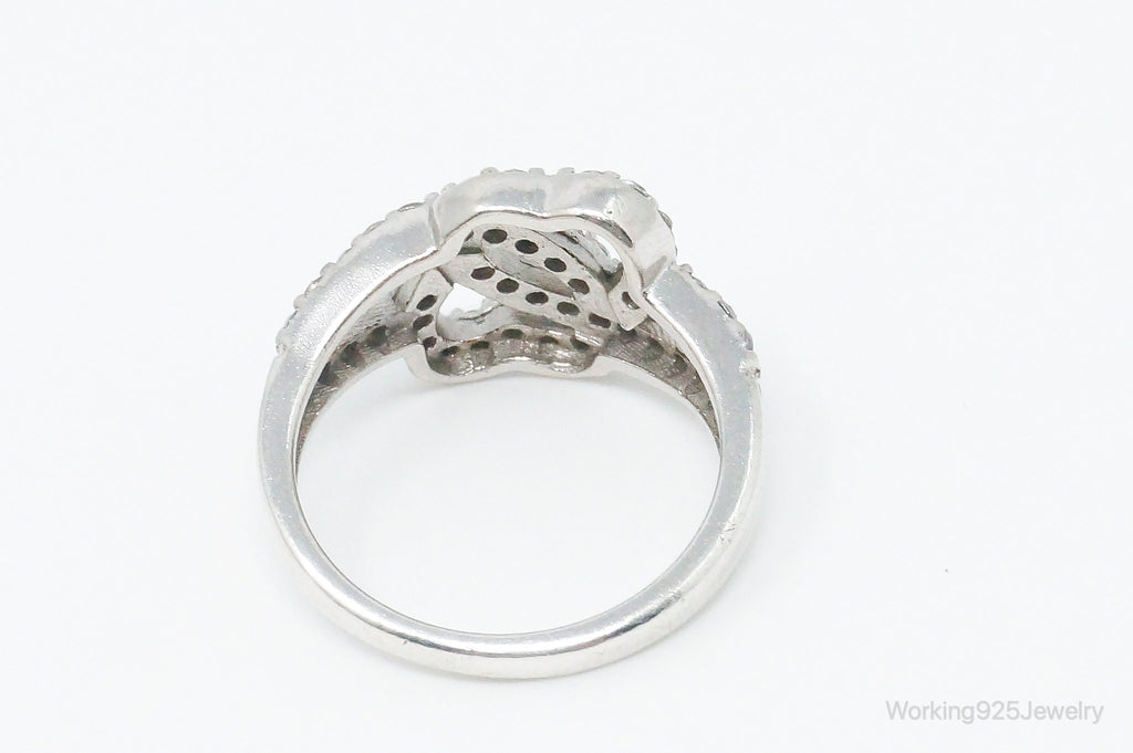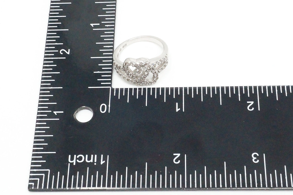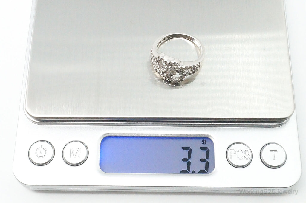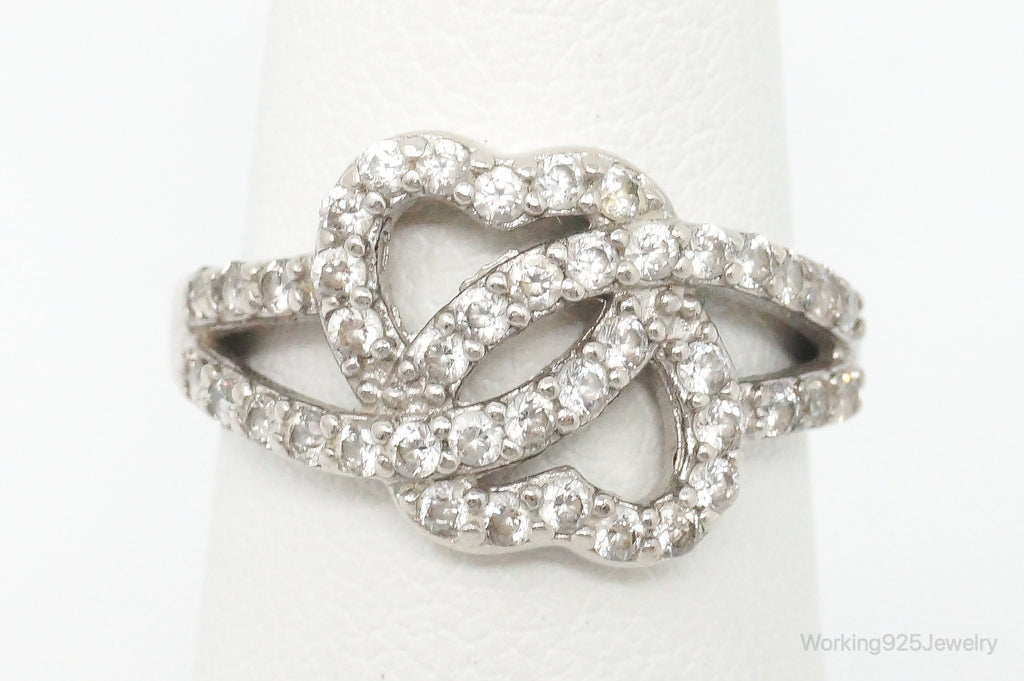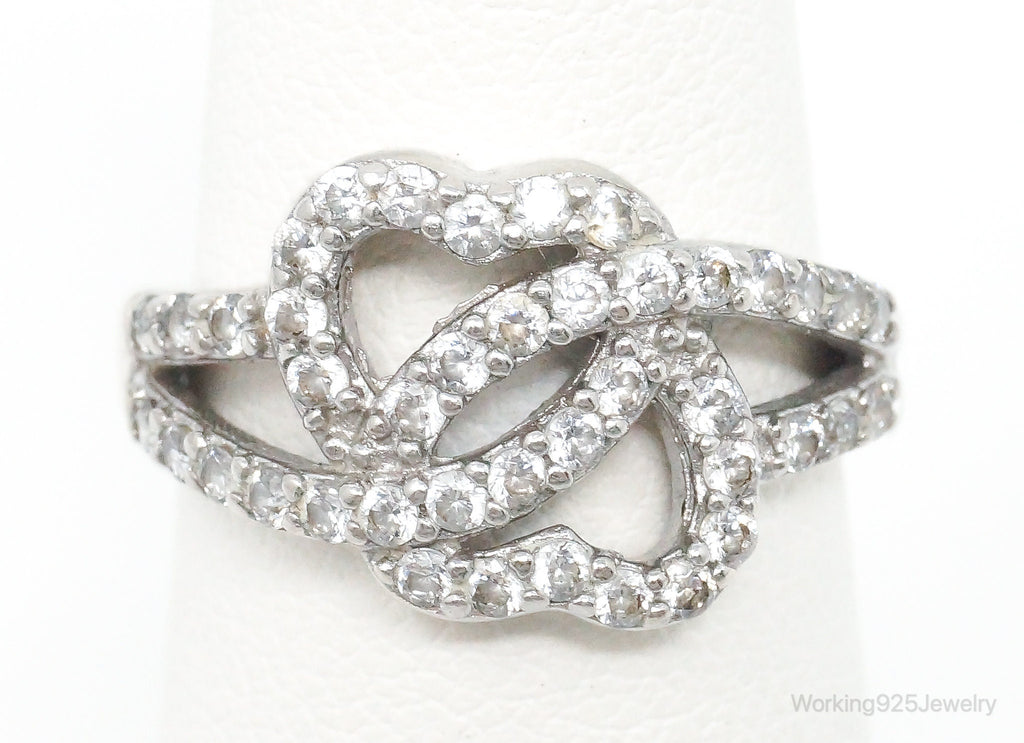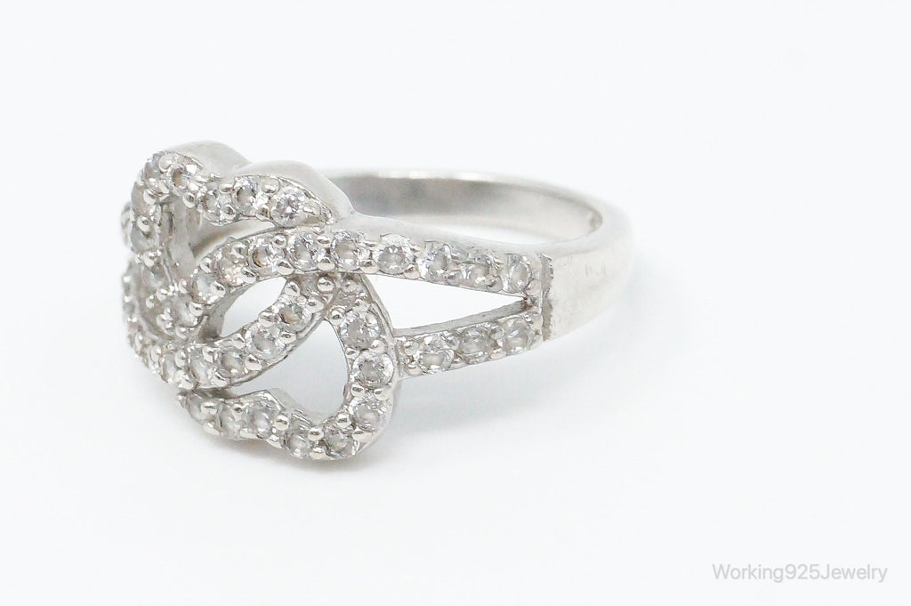 Vintage Cubic Zirconia Linked Hearts Sterling Silver Ring - Size 6