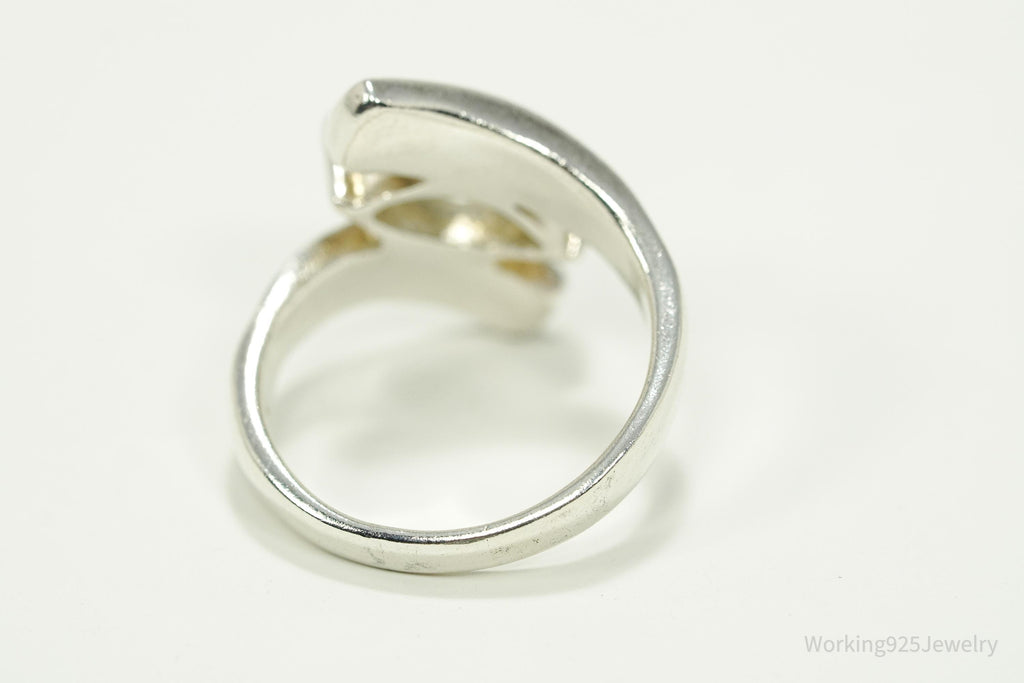Vintage Cubic Zirconia & Opal Inlay Sterling Silver Ring - Size 8
