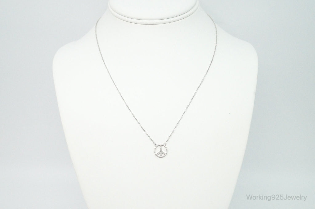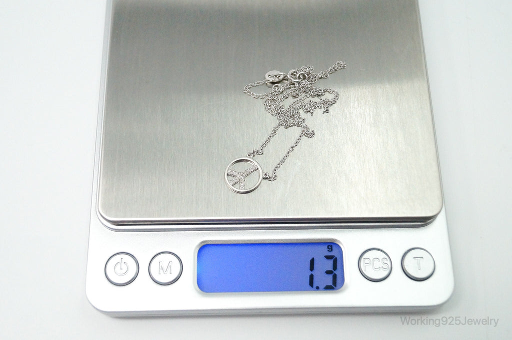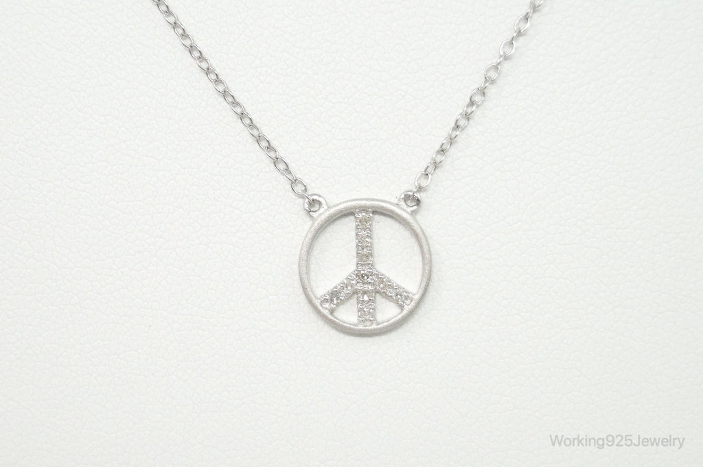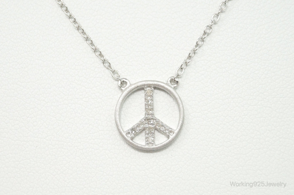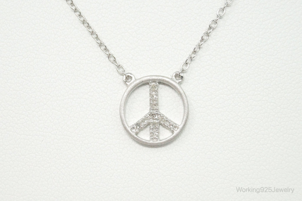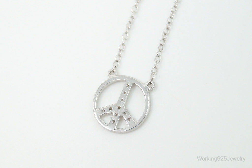 Vintage Cubic Zirconia Peace Sign Sterling Silver Necklace
