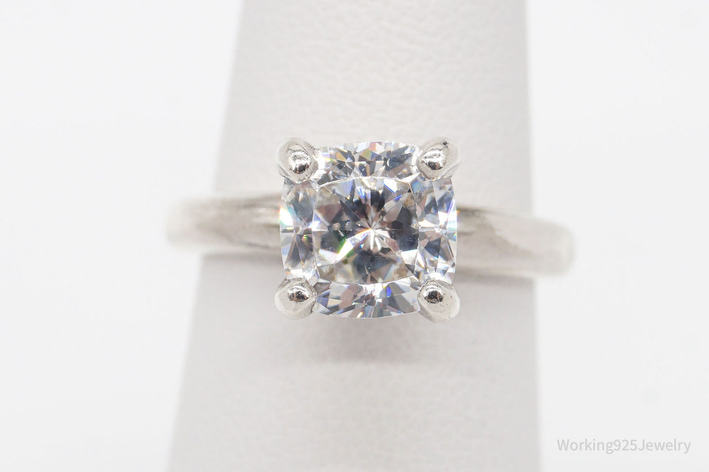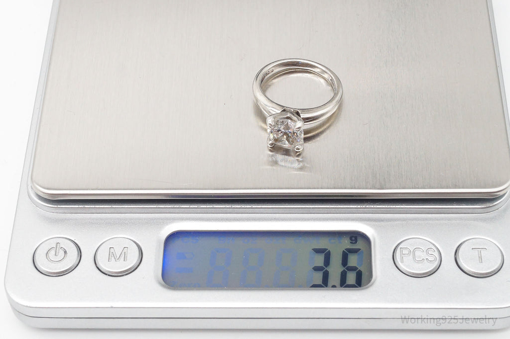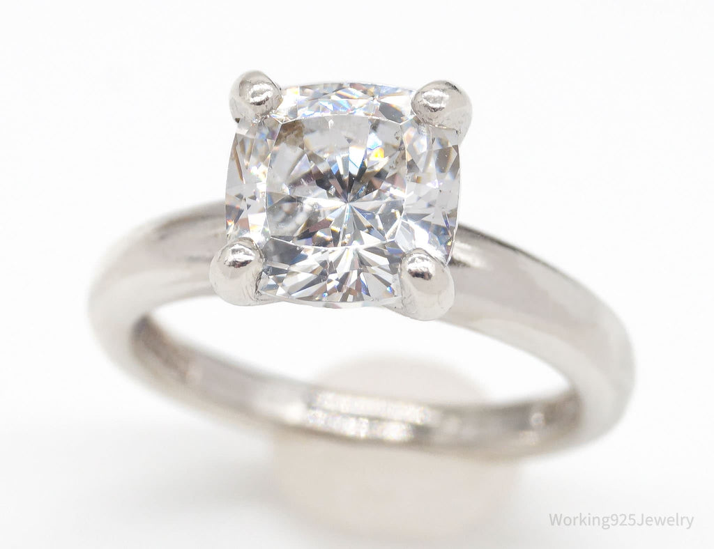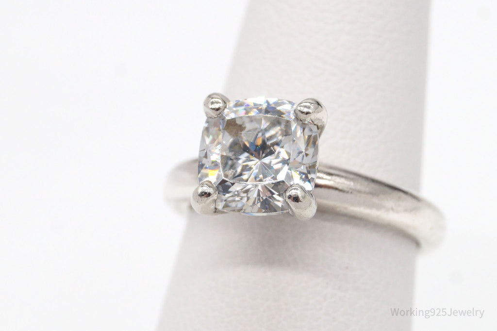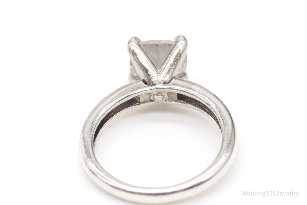Vintage Cubic Zirconia Platinum Clad Sterling Silver Ring - Size 5