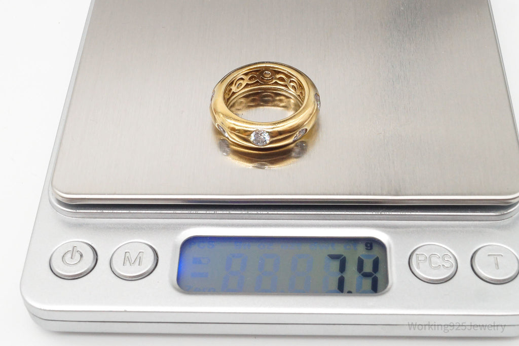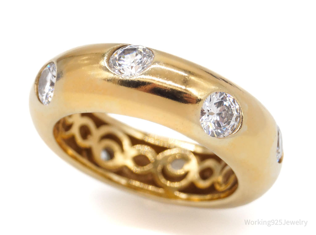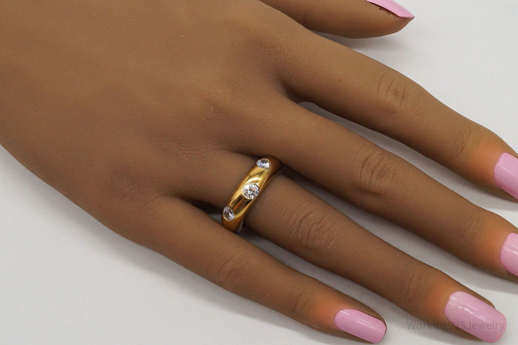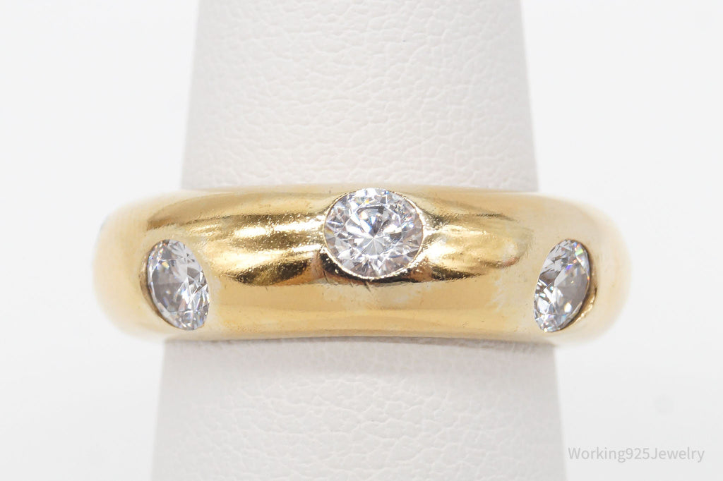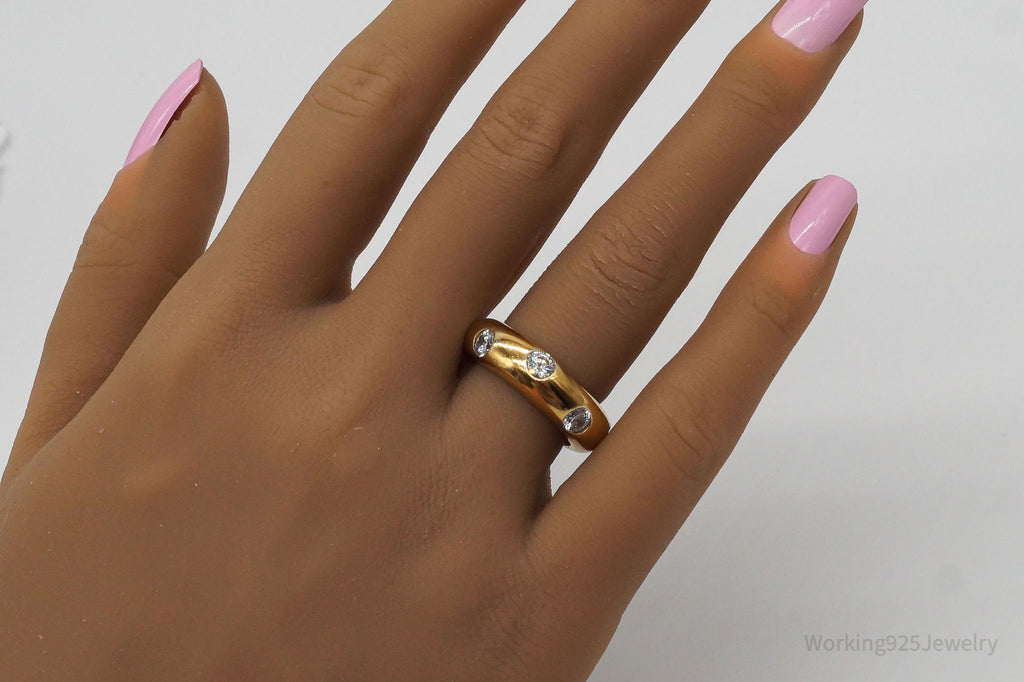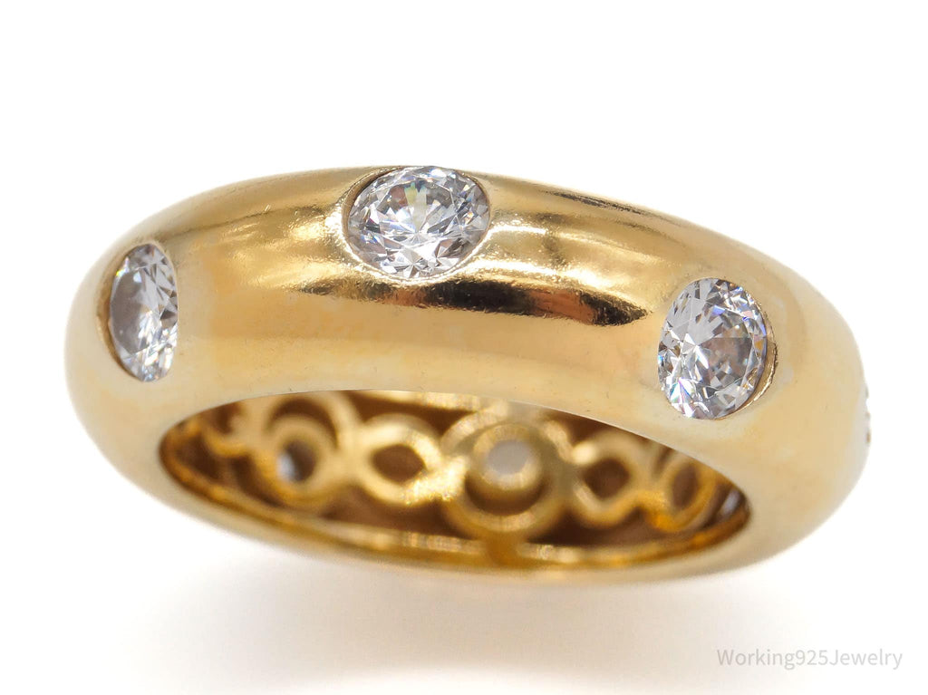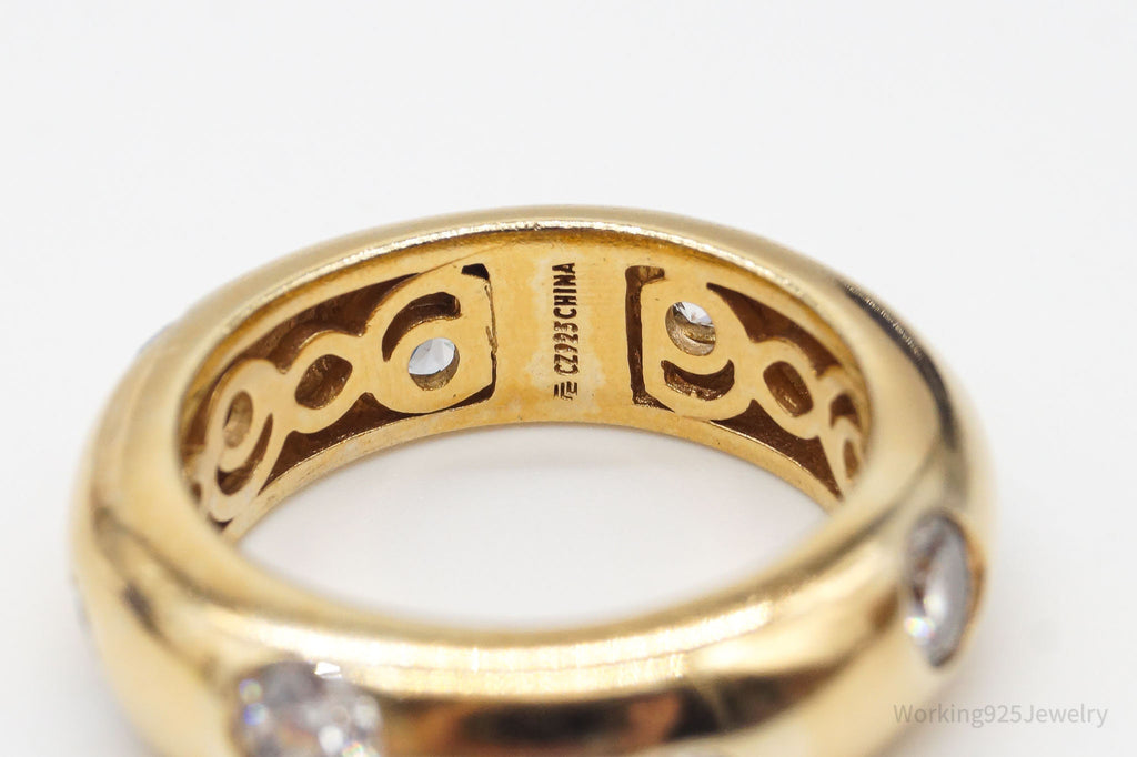 Vintage Cubic Zirconia Platinum Clad Sterling Silver Ring - Size 7