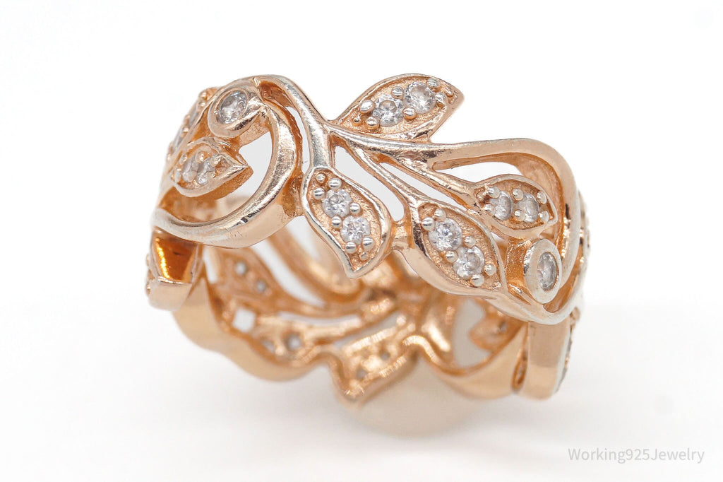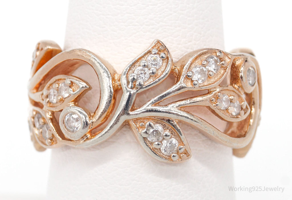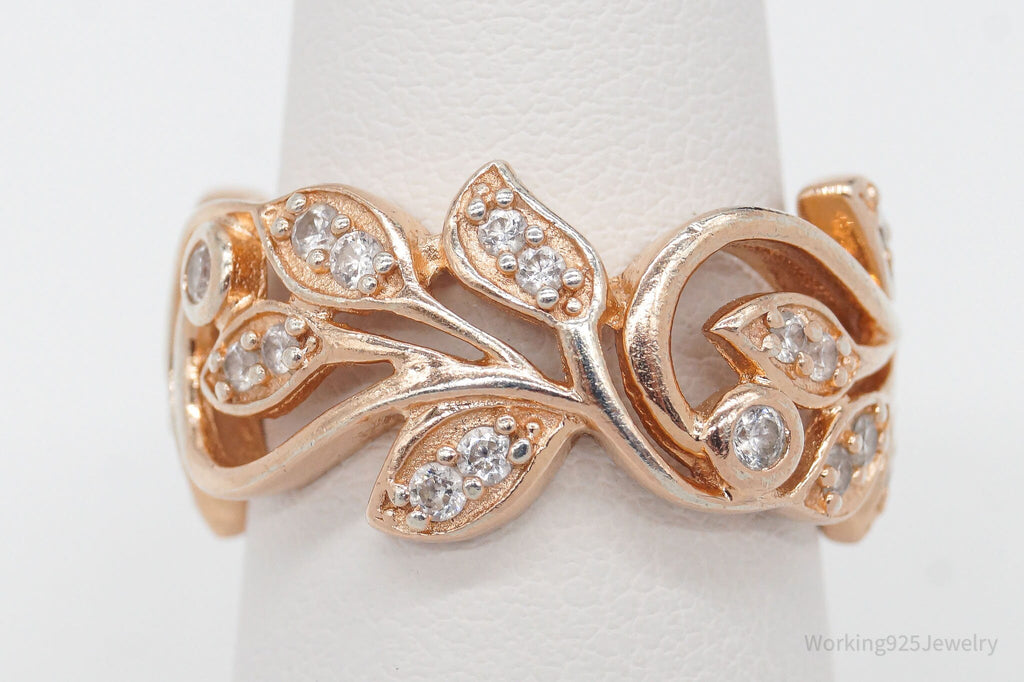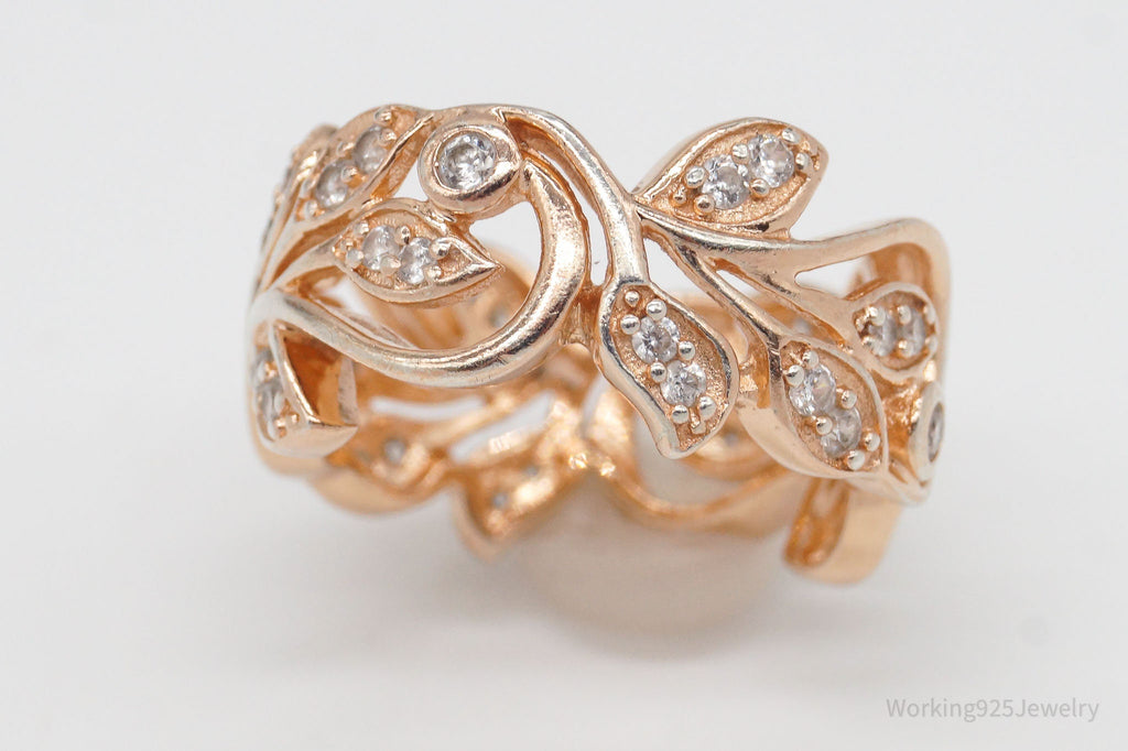 Vintage Cubic Zirconia Rose Gold Vermeil Sterling Silver Ring - Size 8