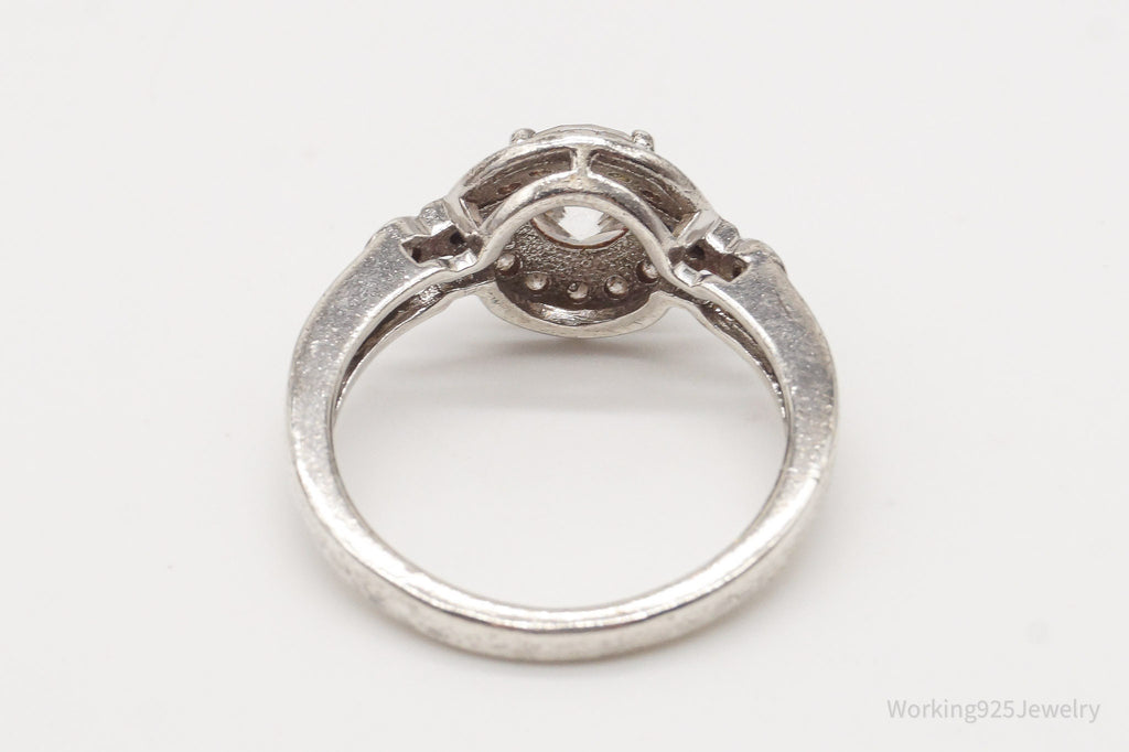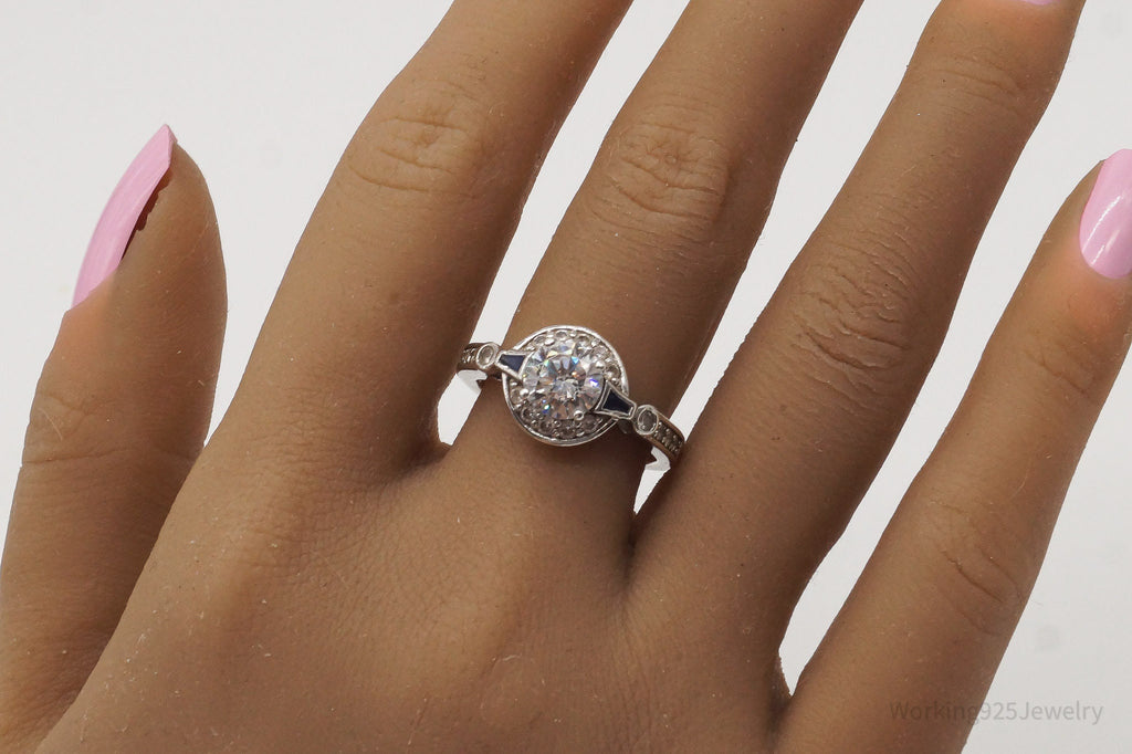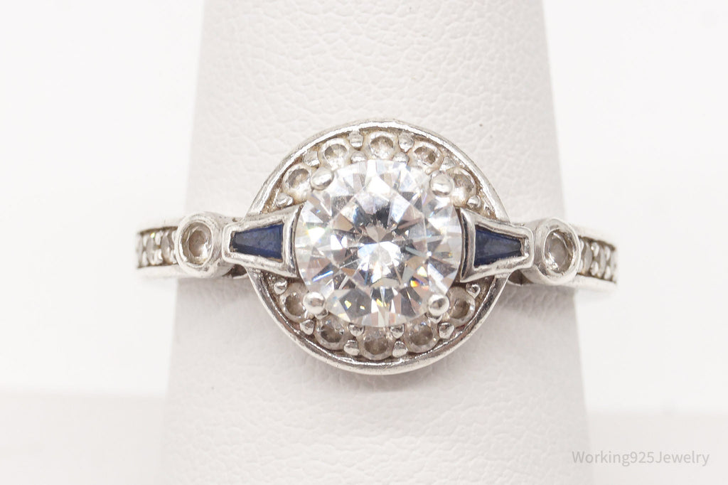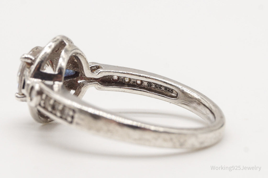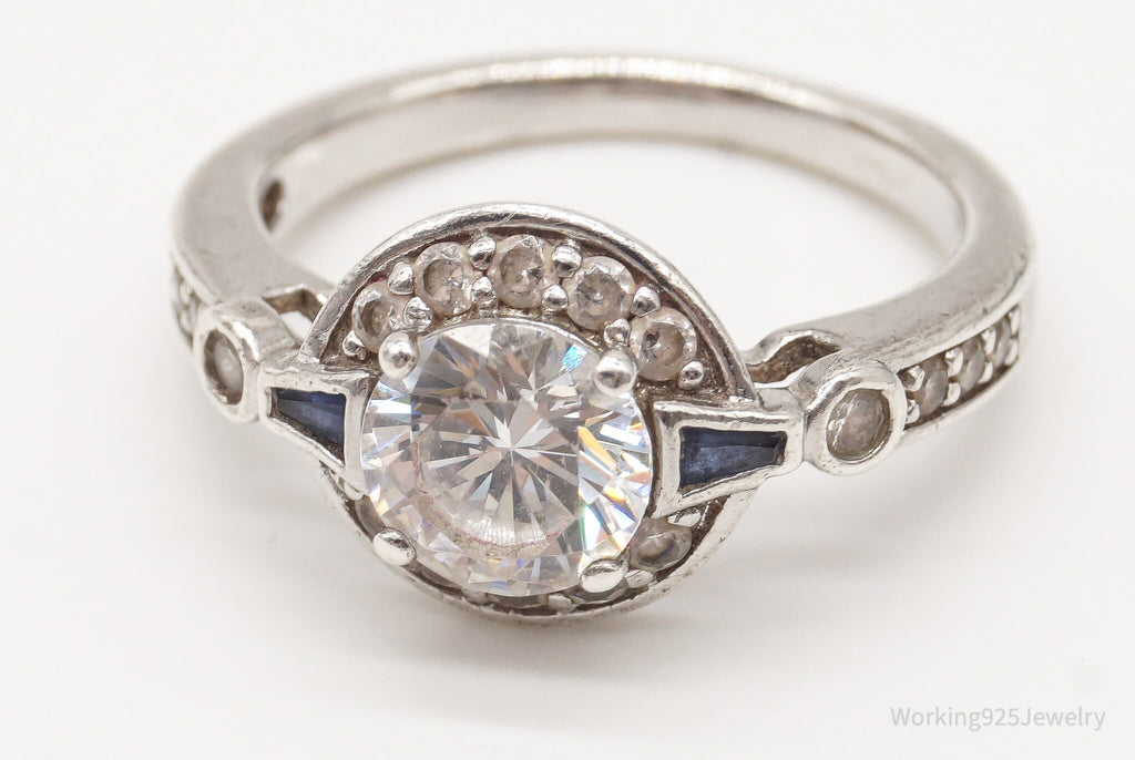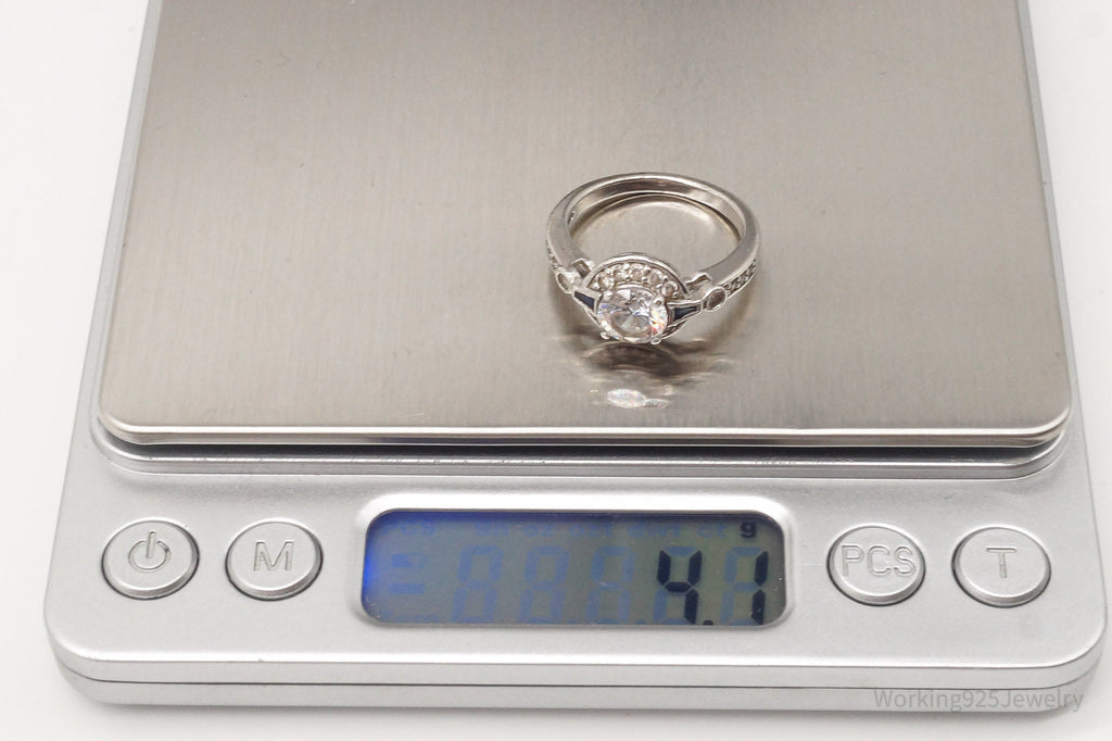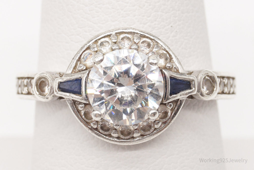 Vintage Cubic Zirconia Sapphire Platinum Clad Sterling Silver Ring - Size 8