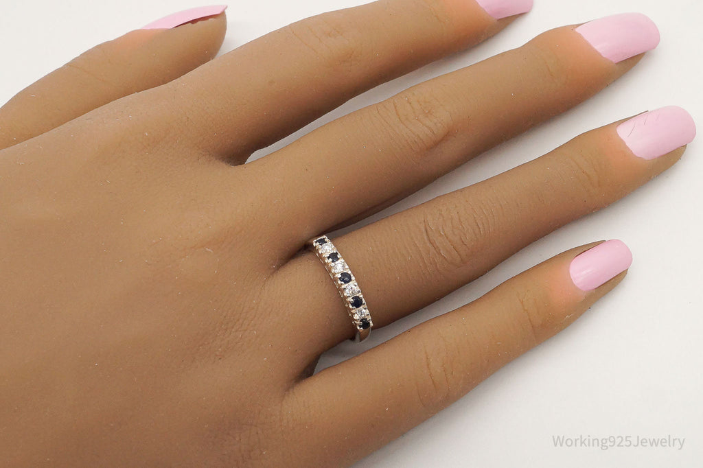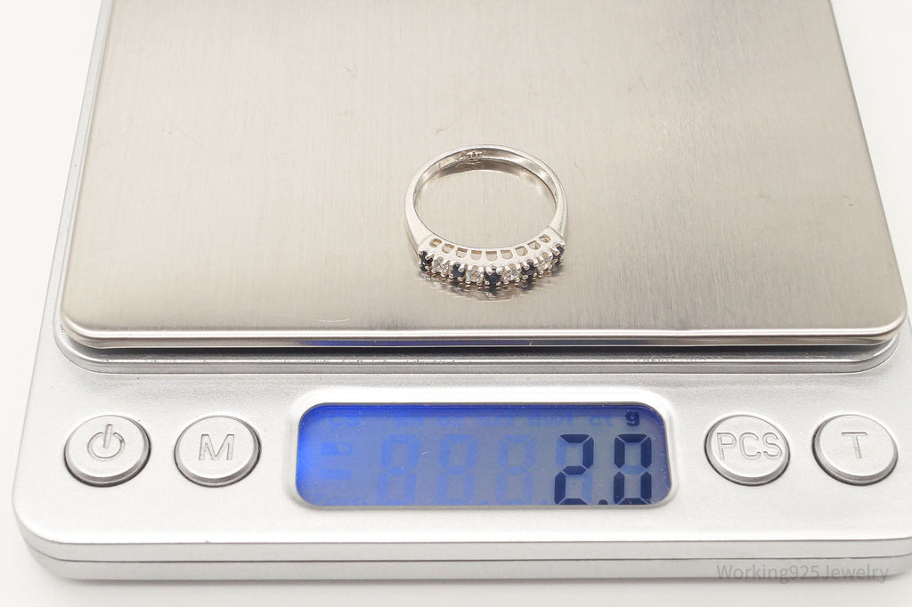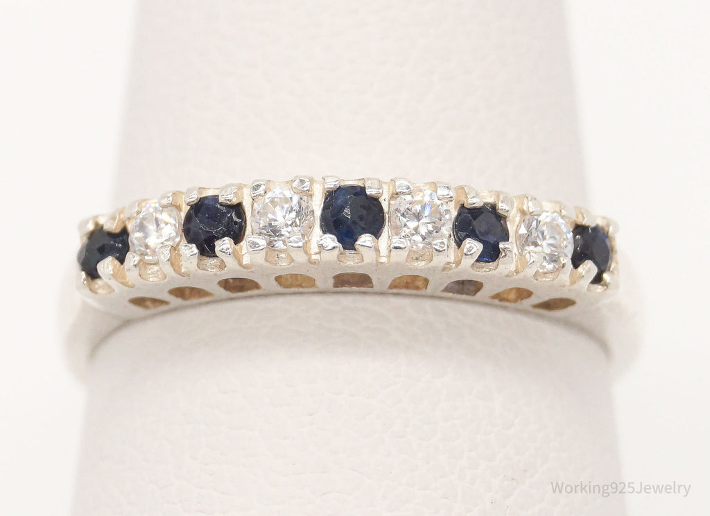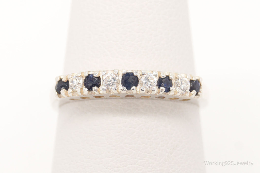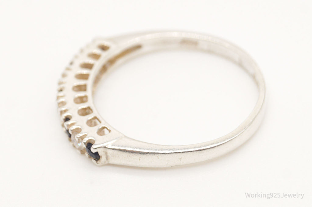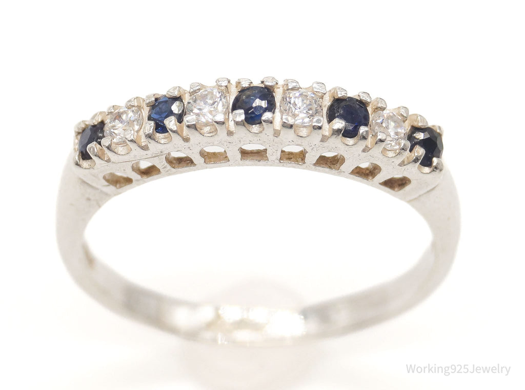 Vintage Cubic Zirconia Sapphire Sterling Silver Ring - Size 6.75