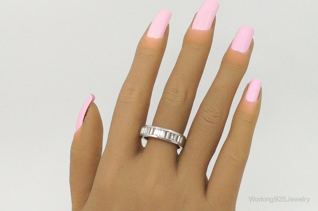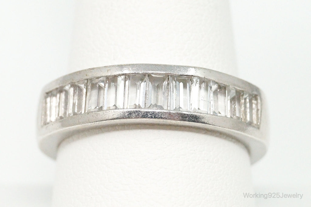 Vintage Cubic Zirconia Sterling Silver Band Ring - Size 10.25