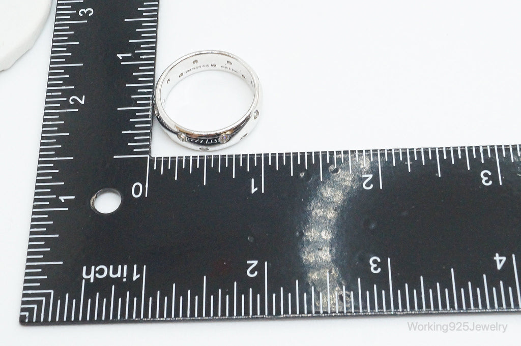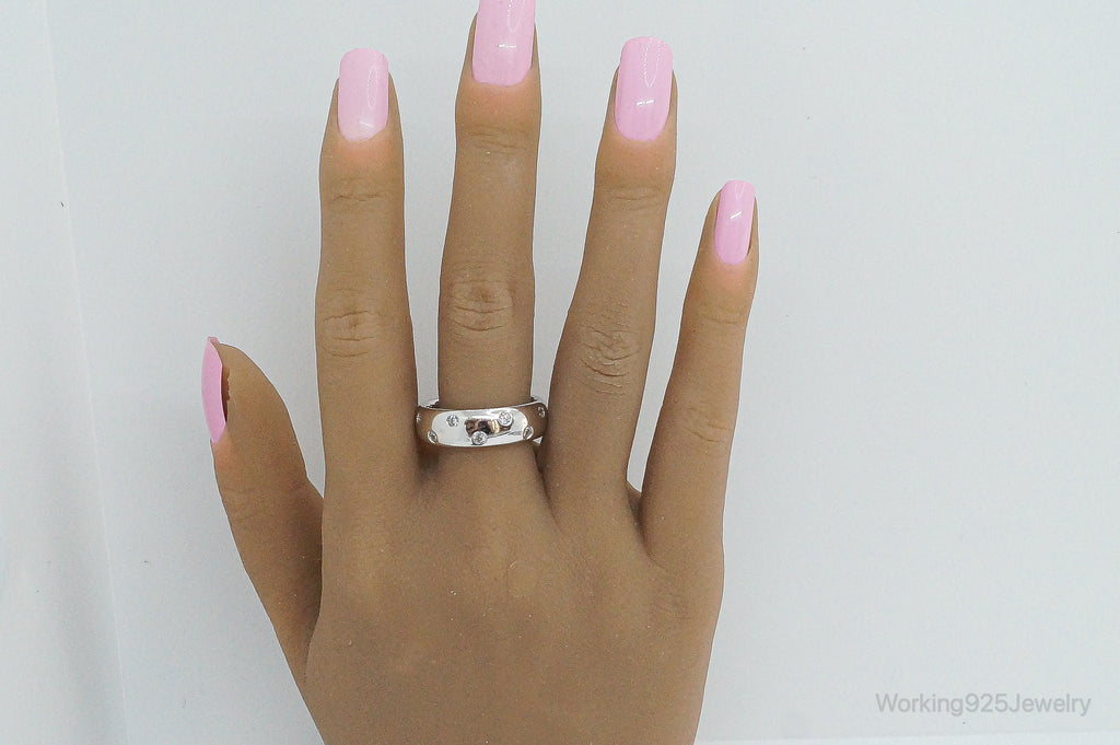 Vintage Cubic Zirconia Sterling Silver Band Ring - Size 11.25