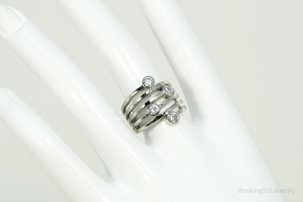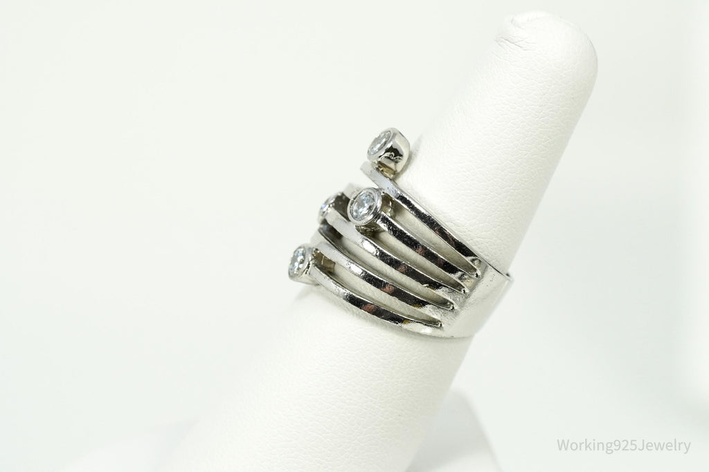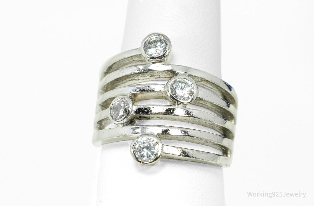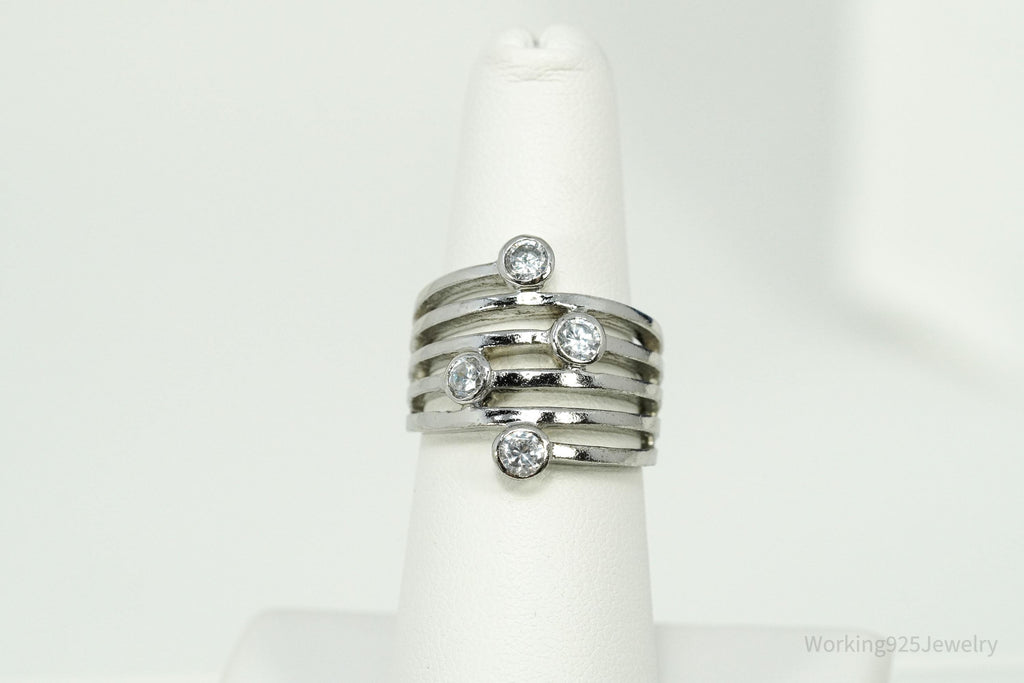 Vintage Cubic Zirconia Sterling Silver Band Ring - Size 6.75
