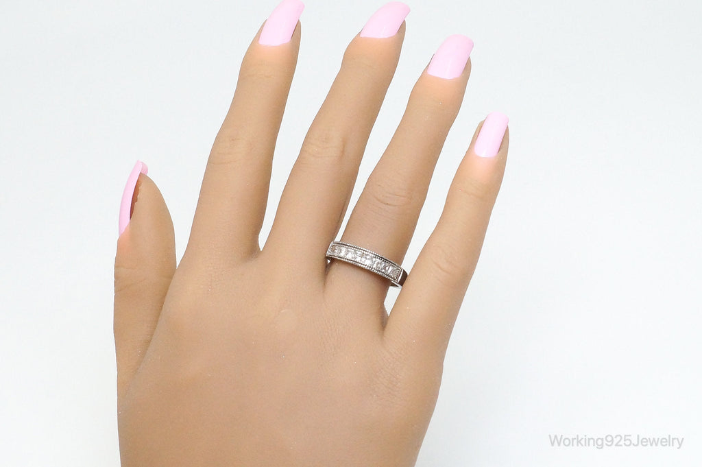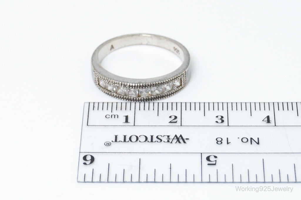Vintage Cubic Zirconia Sterling Silver Band Ring - Size 9