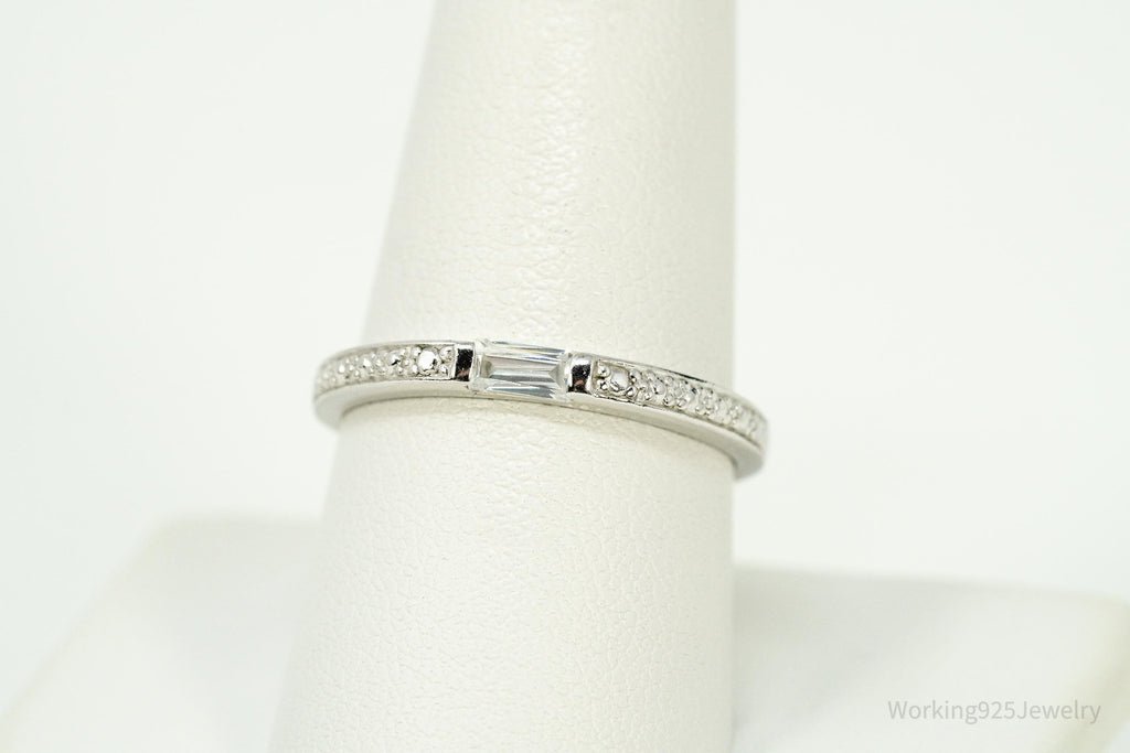 Vintage Cubic Zirconia Sterling Silver Band Ring - Size 9.25