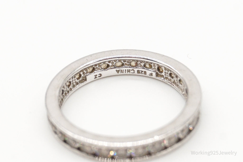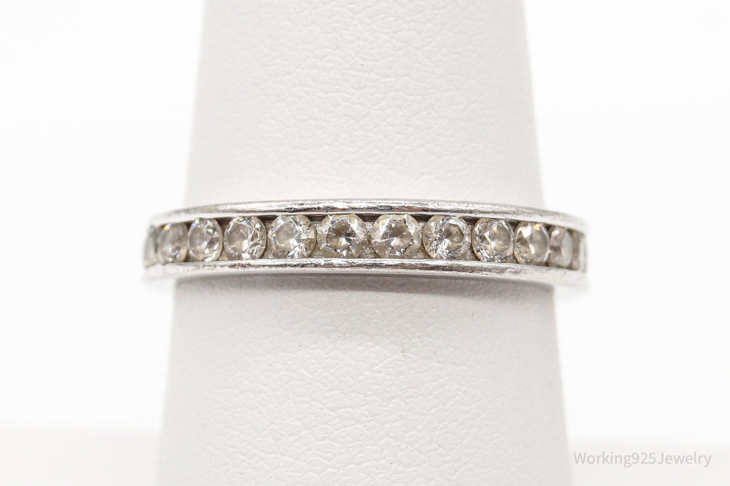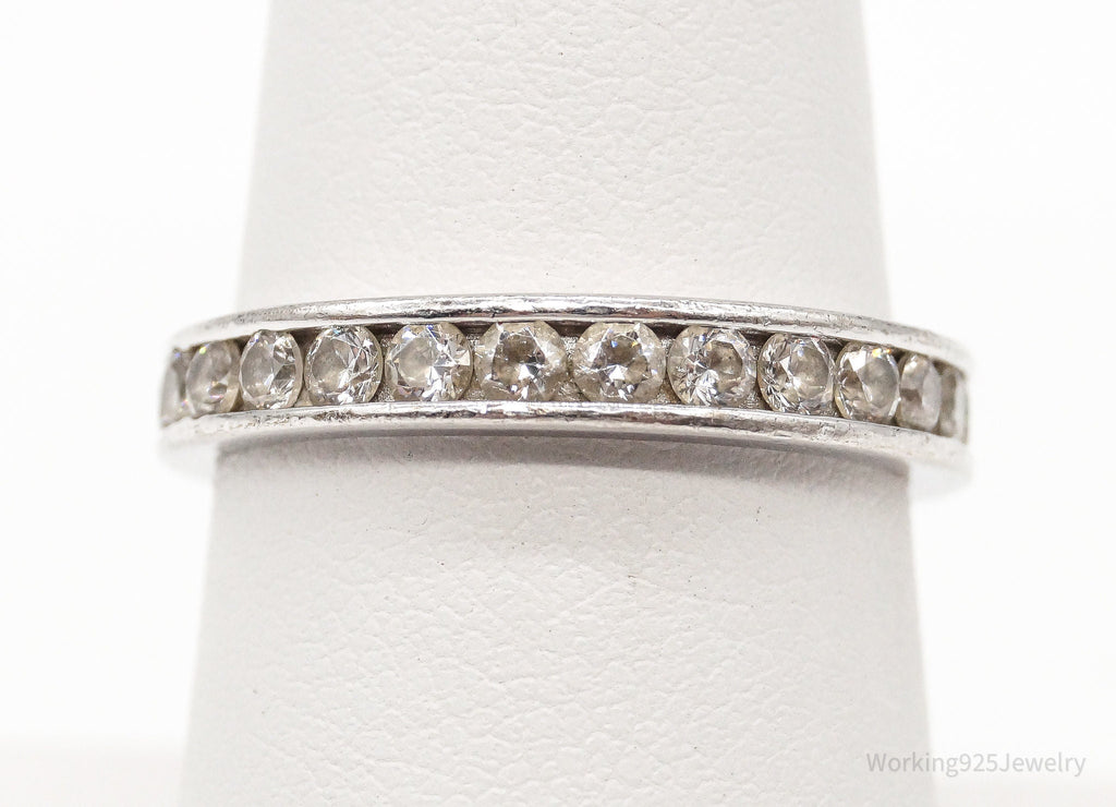 Vintage Cubic Zirconia Sterling Silver Eternity Band Ring - Size 7