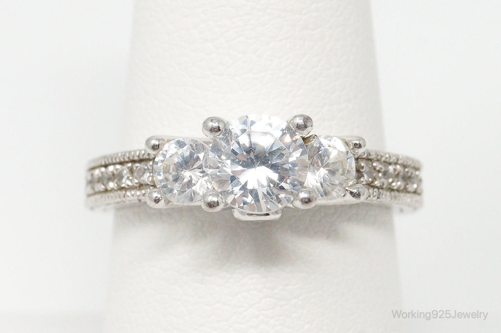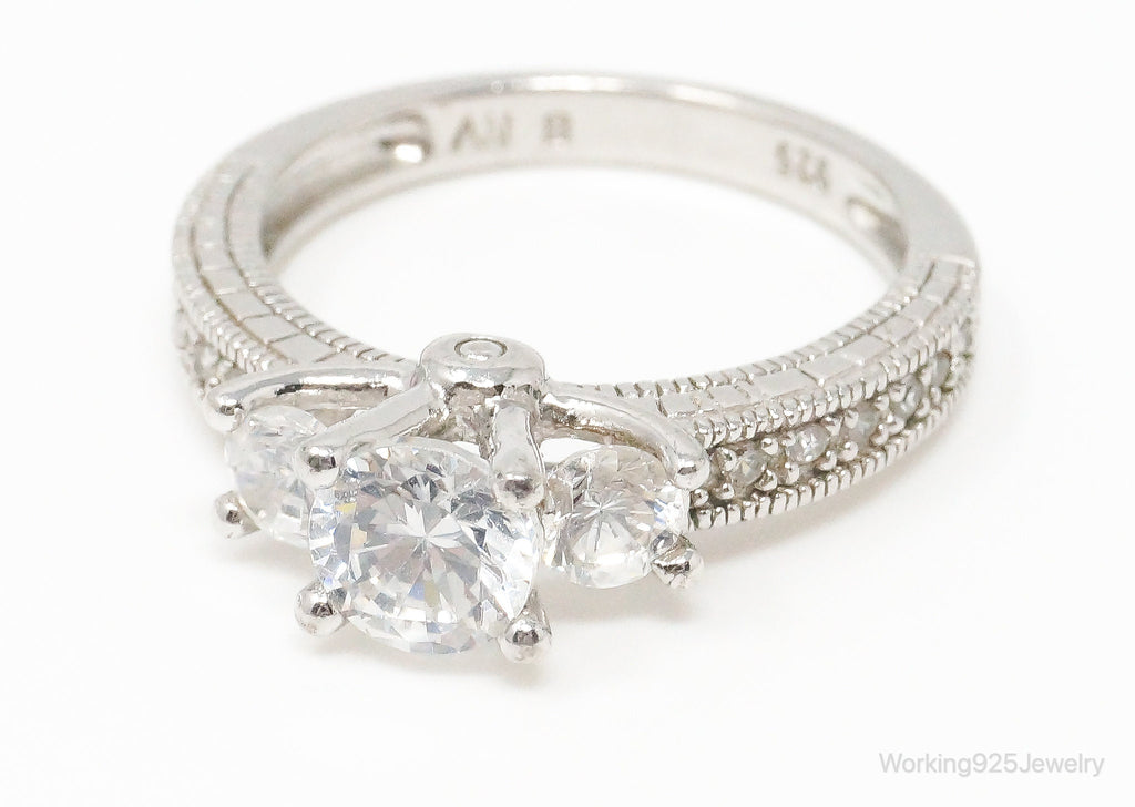 Vintage Cubic Zirconia Sterling Silver Ring - Size 8